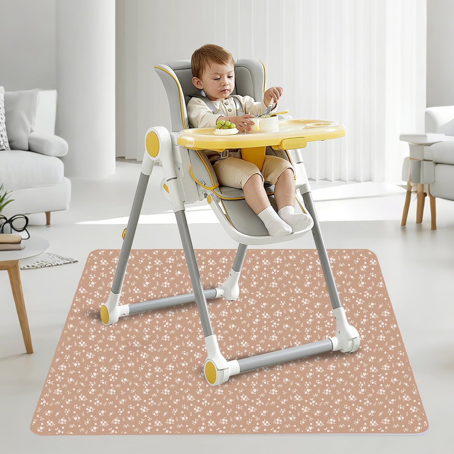 Baby Splat Mat for Under High Chair, 51 x 51 Inch Wipeable Splash Mat,Floor Protector,Wipe-Clean Tablecloth and Playing Mat (Flower)