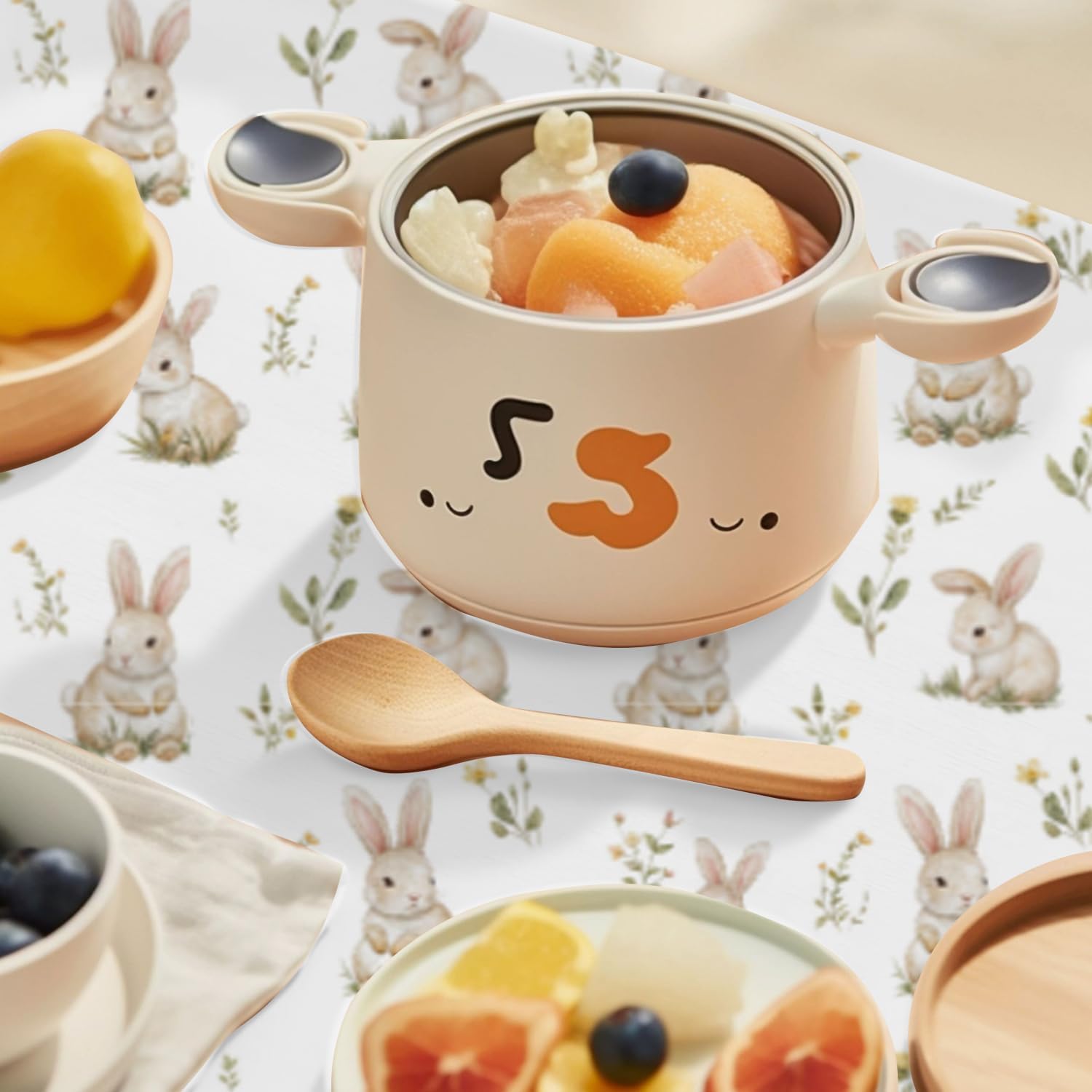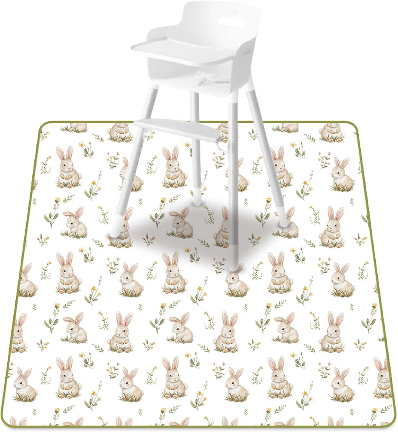 Baby Splat Mat for Under High Chair, 51 x 51 Inch Wipeable Splash Mat,Floor Protector,Wipe-Clean Tablecloth and Playing Mat (Rabbit)