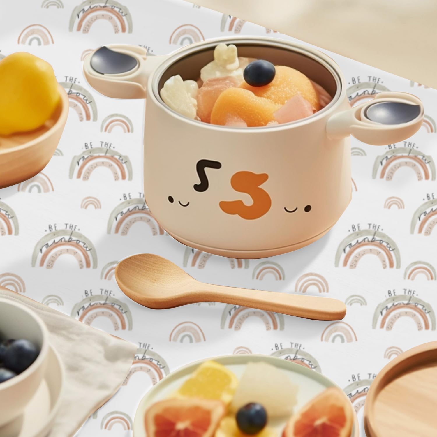 - MULTI - PURPOSE DESIGN: Our CoolaPeach Baby Splat Mat serves as a 51 x 51 inch floor protector under high chairs, catching all the mealtime crumbs and spills. It can also be used as a wipe - clean tablecloth for playtime or drawing, and doubles as a versatile playing mat for various activities, making it a must - have for every parent.