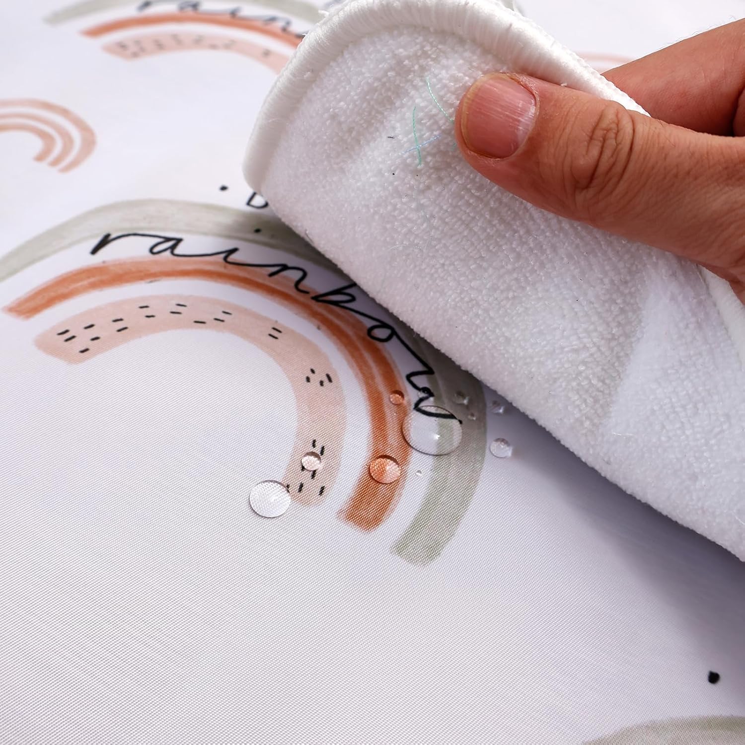 - EASY TO CLEAN: With its wipeable surface, this splash mat is a breeze to clean. Most food messes can be simply shaken off or quickly wiped away with a damp cloth. No more spending hours scrubbing floors after your baby's meals. And if needed, it's machine - washable for a deeper clean.