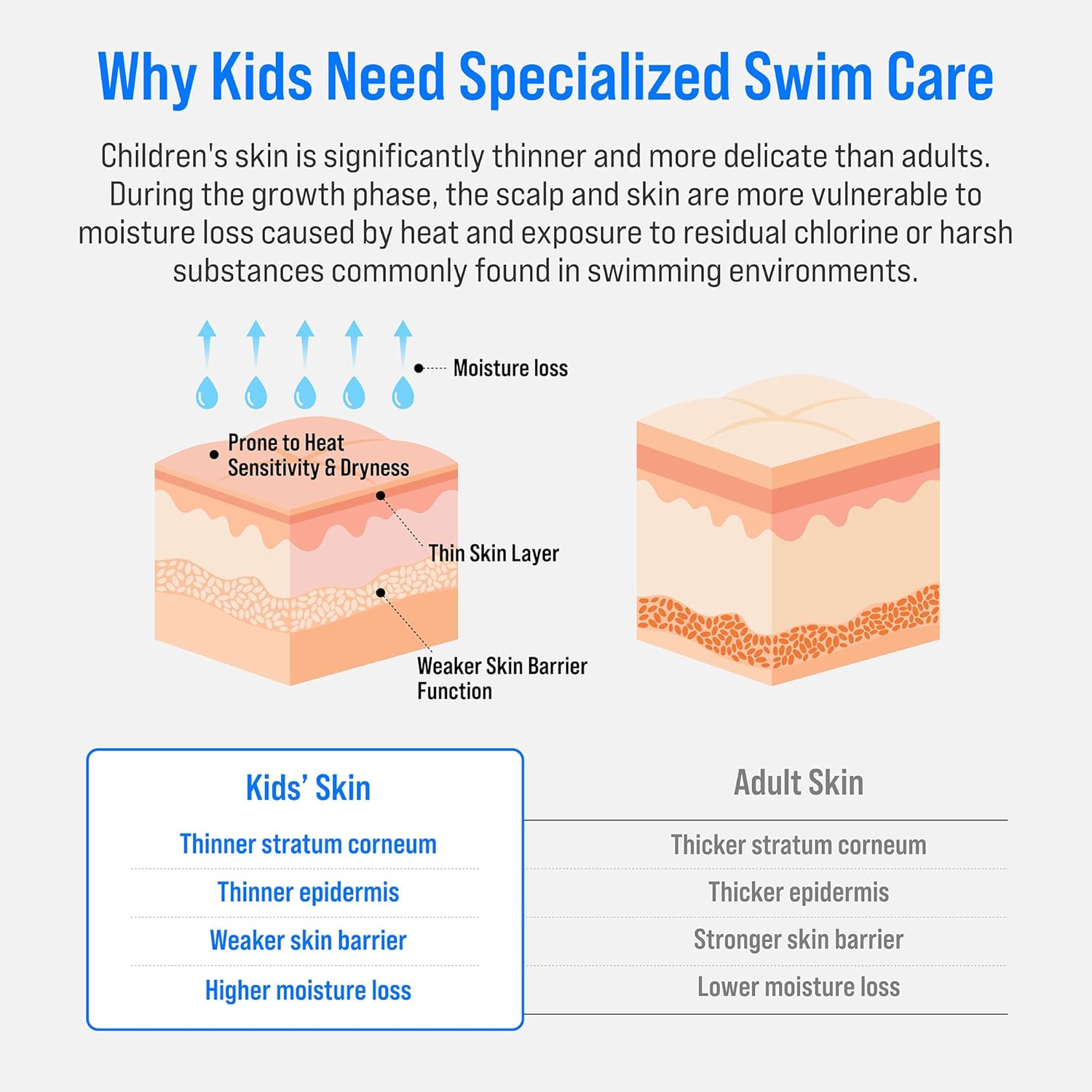 - After-Swim & Pool Shampoo for Kids –Removes chlorine, saltwater and pool residue while keeping baby & kids’ hair soft, hydrated and healthy after every swim. Perfect for daily after-swim care.