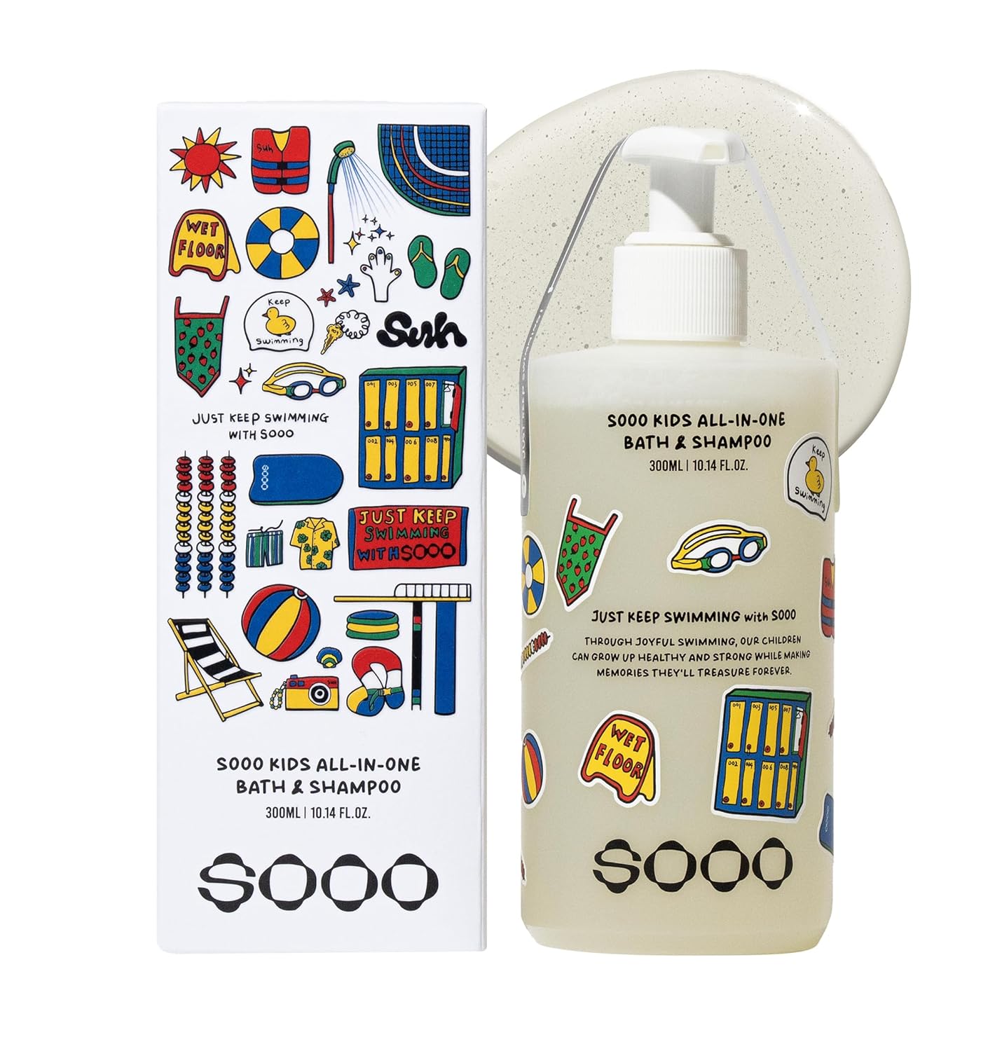 SOOO Kids Swimming Shampoo & Body Wash 2-in-1 Tear-Free Gentle Pool Care for Baby & Kids, Removes Chlorine & Salt After Swimming, Hydrating & Moisturizing Formula, Sulfate-Free, Paraben-Free 10.1oz