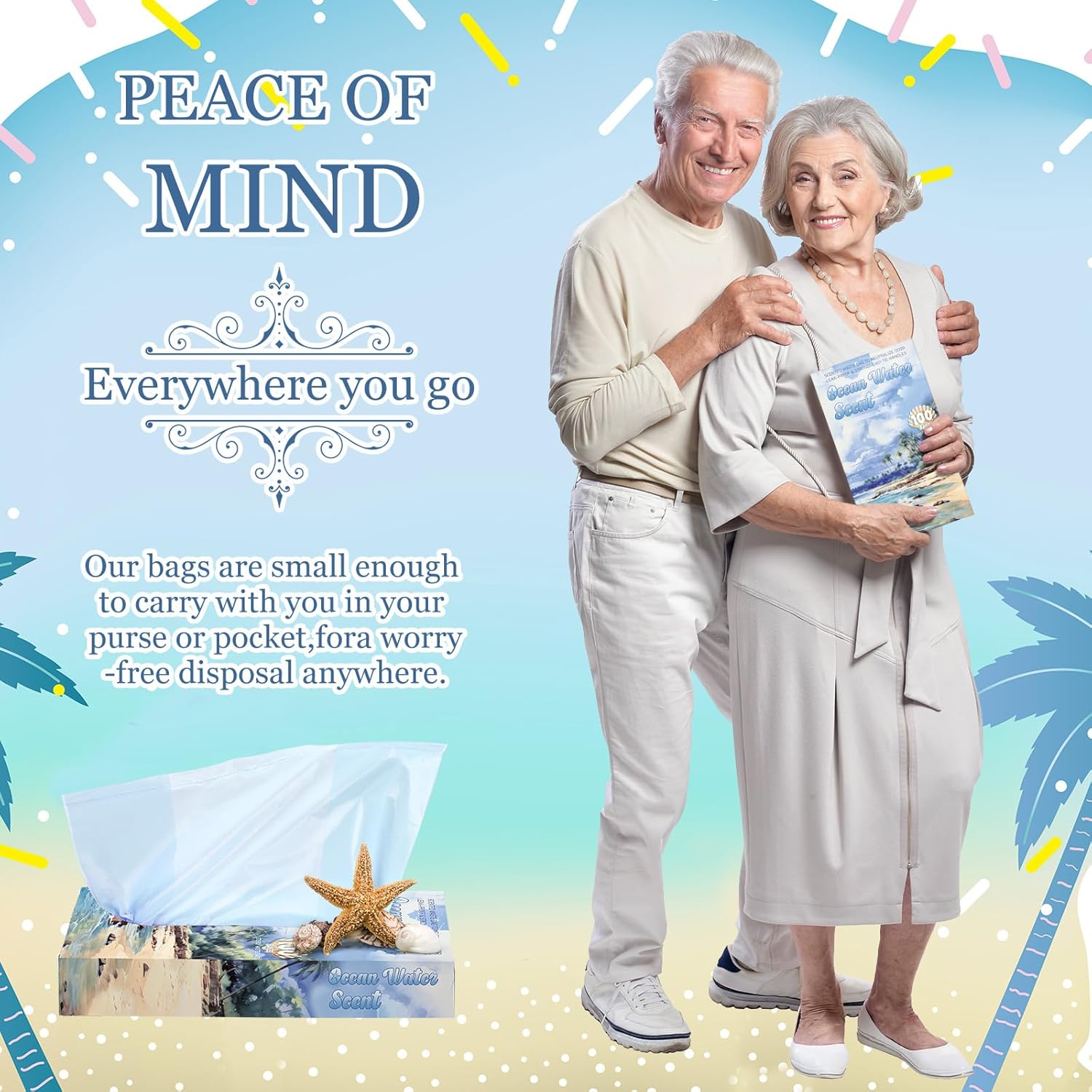 - Ocean Water Scented Trash Bags: infused with Ocean Water Scented, these diaper trash bags help neutralize unpleasant odors from sanitary napkins, adult incontinence products, and diapers, ensuring a fresh, odor-free environment