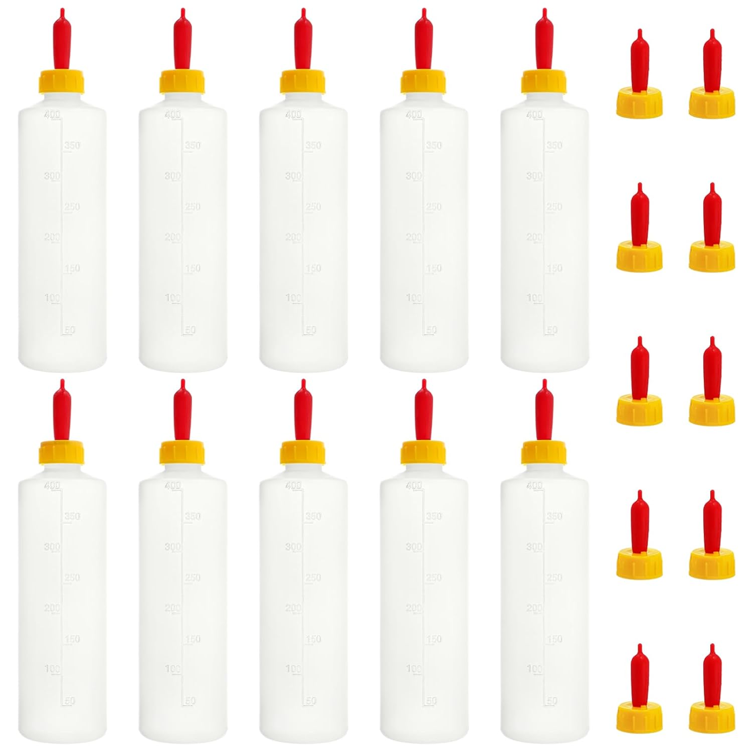 - Complete Set: Provide ample feeding supplies for your livestock with our complete set of 10 durable 400ml feeding bottles and 20 soft nipples. Our lamb feeding bottle features clear milliliter volume markings on the side, allowing you to easily monitor milk intake for each animal.