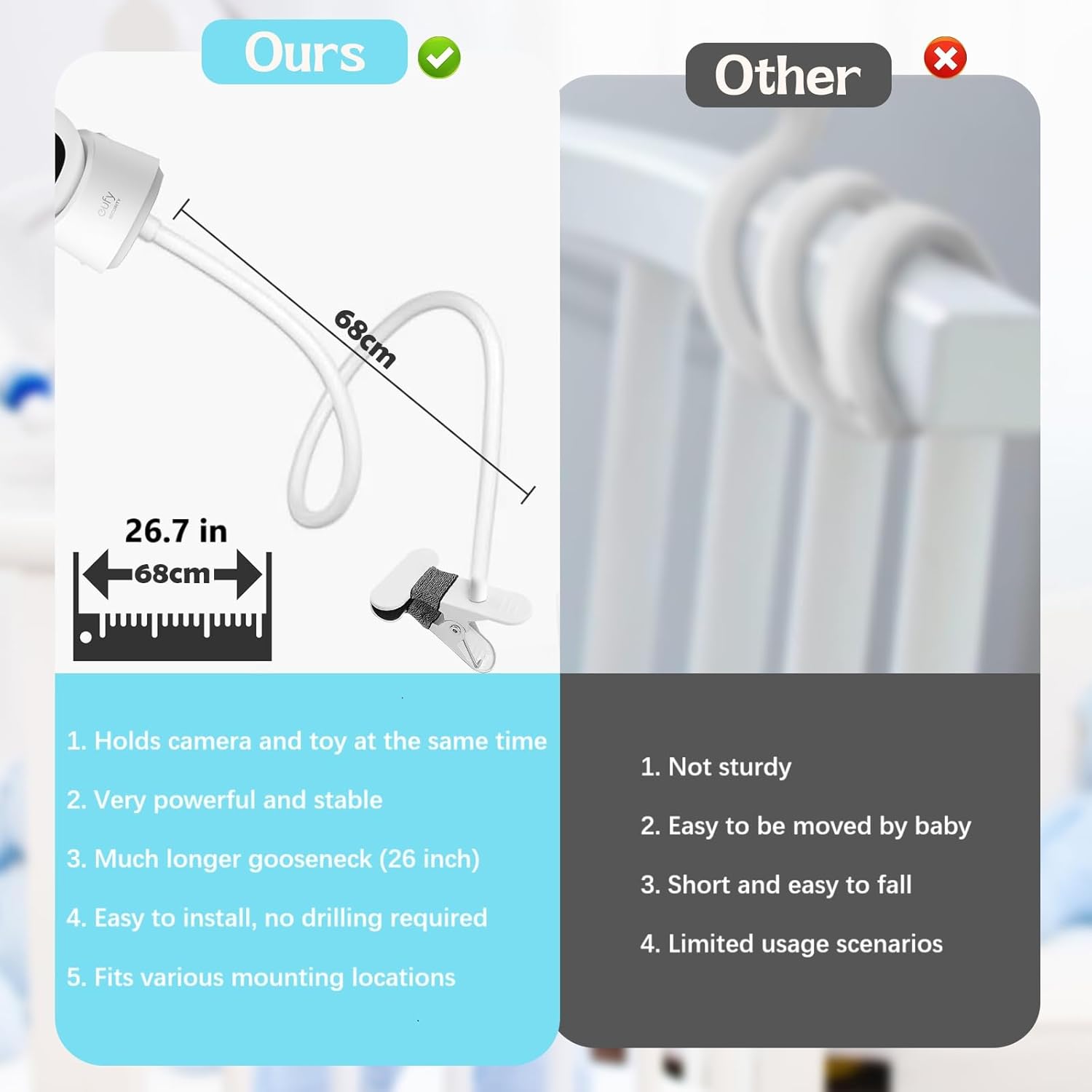 - EXTENDED REACH: 26.7-inch flexible gooseneck arm provides optimal viewing angles and positioning for complete nursery coverage, much better than other 15'' mounts