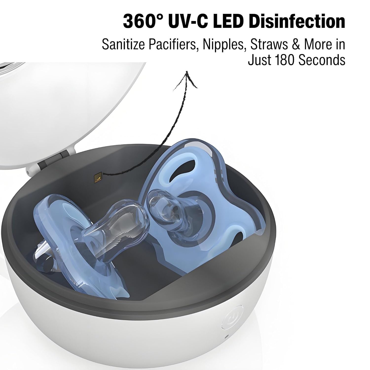 - 360° UV-C LED Thorough Sanitization: Equipped with all-around UV-C LED technology, it provides complete 360° coverage to maintain cleanliness for pacifiers, bottle nipples, straws, and more in just 180 seconds, ensuring items are hygienic and ready for use.