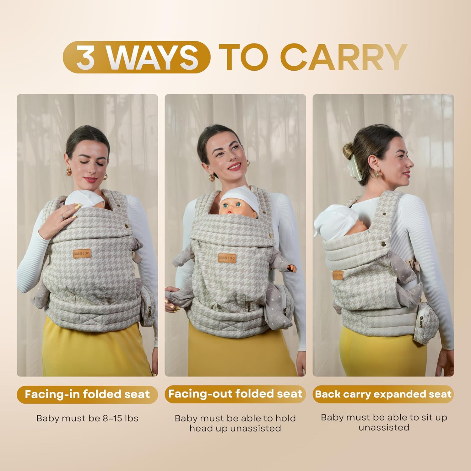- 4-in-1 Versatility from Newborn to Toddler – Designed for babies from 7 to 44 lbs, this all-in-one baby carrier supports three ergonomic carry positions: Front Inward (3+ months), Front Outward (6+ months), and Back Carry (6+ months)—adapting to every stage of your baby’s growth.
