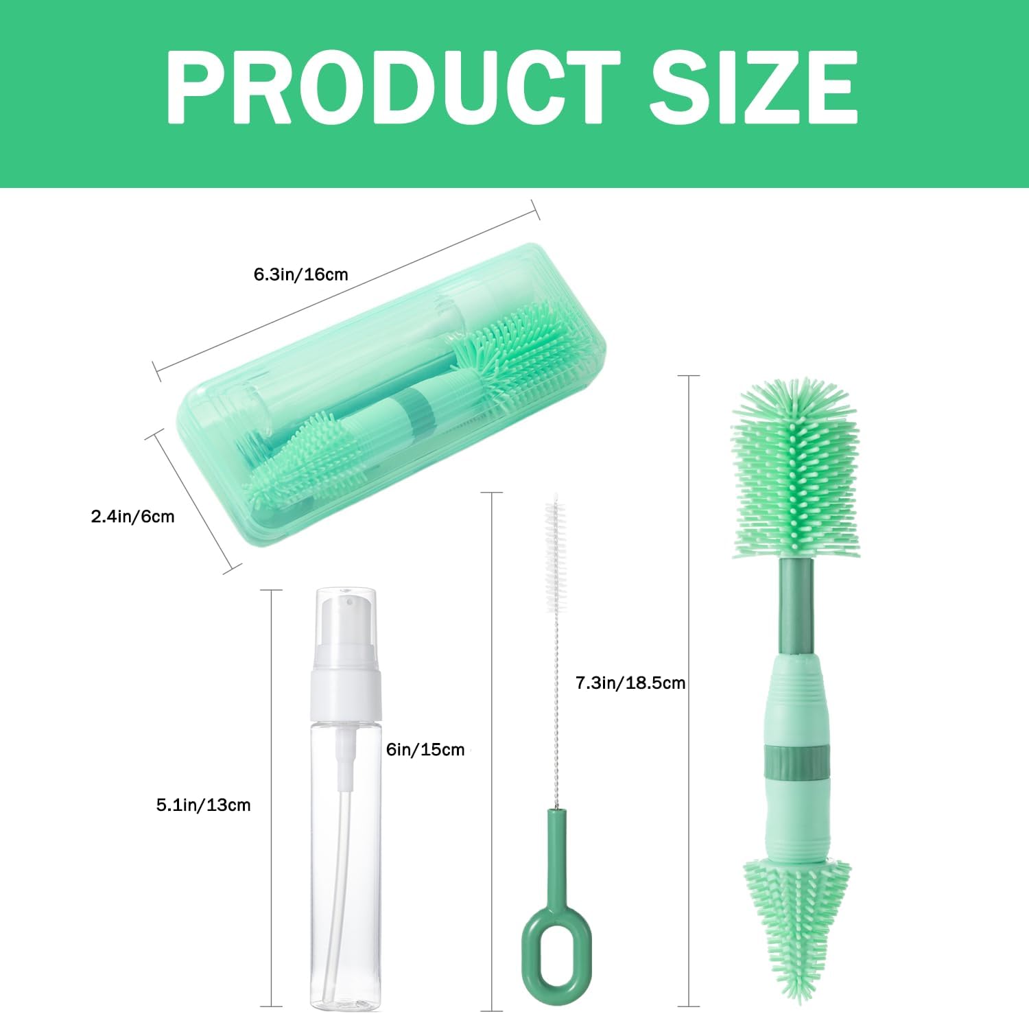 - Complete Bottle Cleaning Tool - 6-in-1 portable travel bottle cleaner kit, including a small silicone bottle brush, nipple brush, straw cleaner brush,soap dispenser, and a convenient storage box built-in drying rack, can does a good job of cleaning bottles on the go.