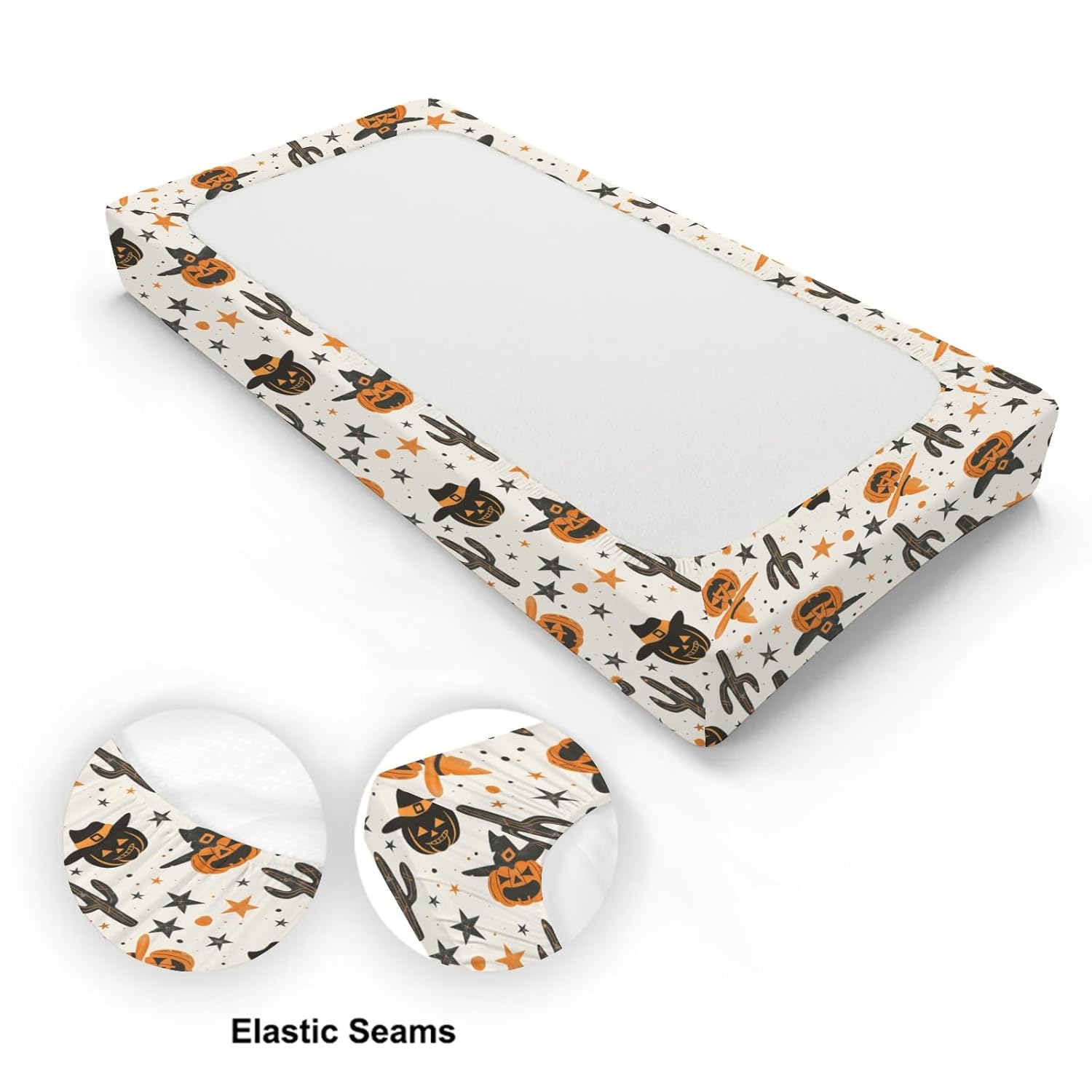 Western Halloween Pumpkins Cactus Hats Stars Baby Changing Pad Cover, Unisex Fall Winter Holiday Nursery Diaper Changing Table Pad Mat Sheet for Boys Girls-16x32