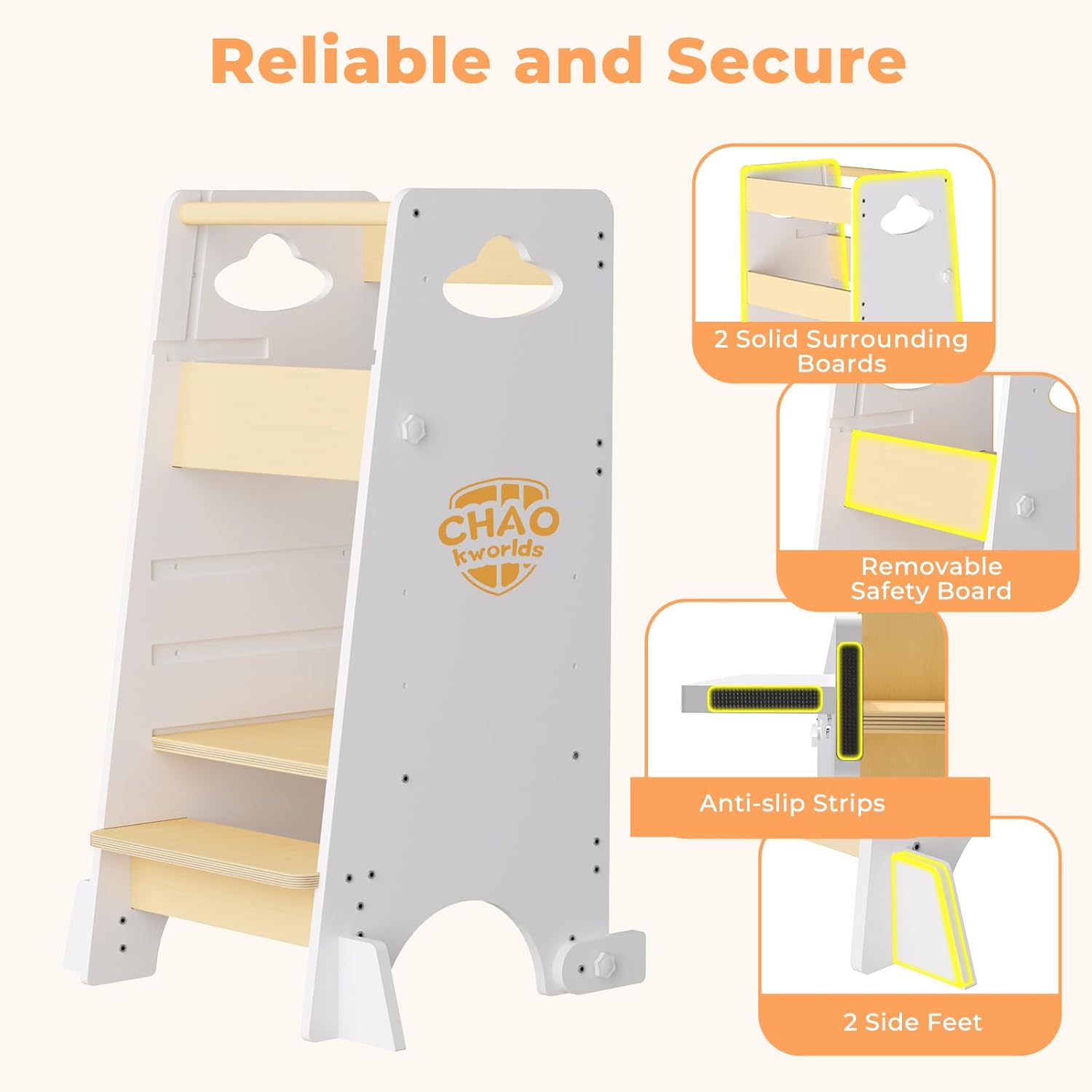 - 【3-IN-1 GROW-WITH-ME DESIGN】 Adjustable standing platform (3 heights) + convertible safety guard (2 levels) Durable & Safe for Active Toddlers:Crafted from high-quality, child-safe materials, this tower is built to last. Its sturdy frame supports up to 220 lbs, while the non-slip feet and widened base design provide enhanced stability—so your little one can climb, learn, and play with confidence.