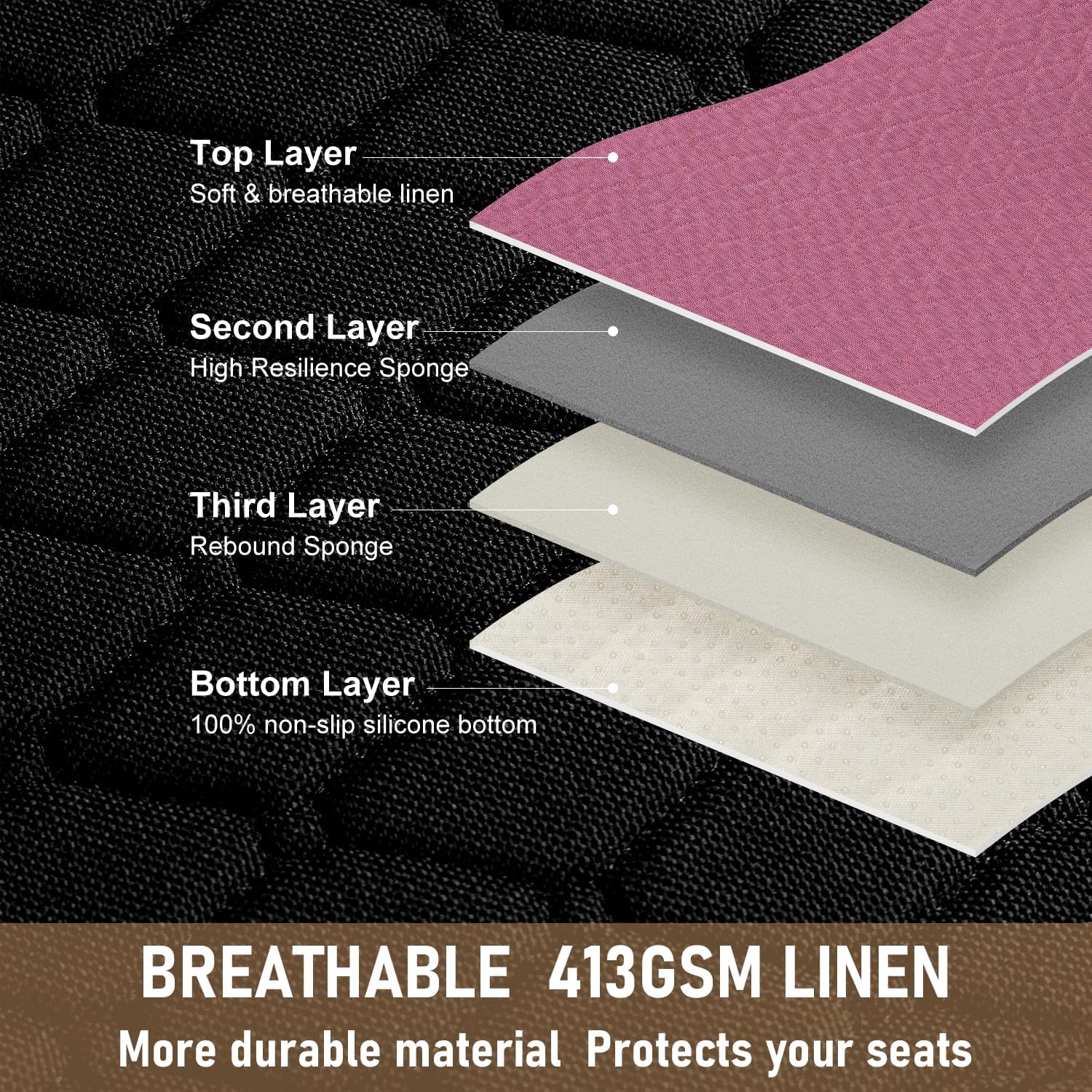 - 【Premium Linen Material】: Our linen car seat covers are made of 413GSM linen fabric, which is wear-resistant, not easily deformed, and more durable than other products. The linen bottom seat covers are breathable for long drives.