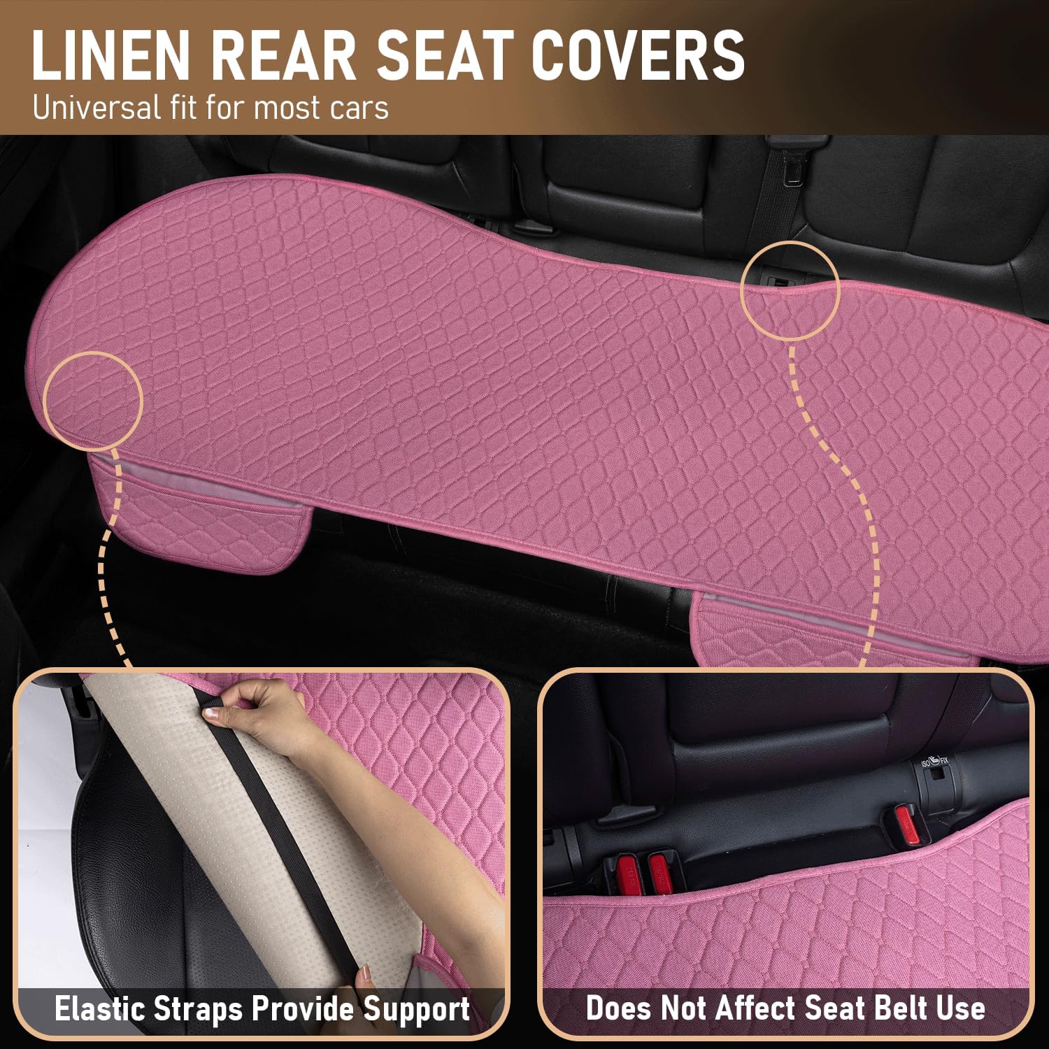 3 PCS Linen Car Seat Covers with Storage Pocket, Back Seat Covers Protectors with Non-Slip, Breathable Bench Seat Covers Universal Fit for SUVs, Cars, Trucks (Pink)