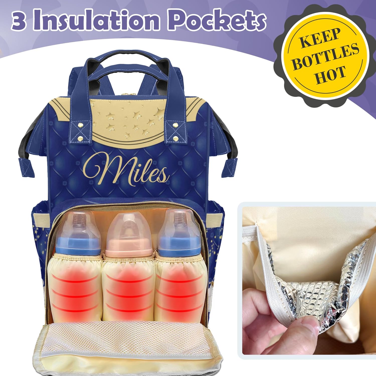- Insulated Bottle Pockets: Our Custom Name diaper bags for boys girls equipped with insulated side pockets, the backpack can maintain baby bottles or snacks at an ideal temperature for hours. The pockets are designed to securely hold standard-sized bottles, preventing spills or leaks