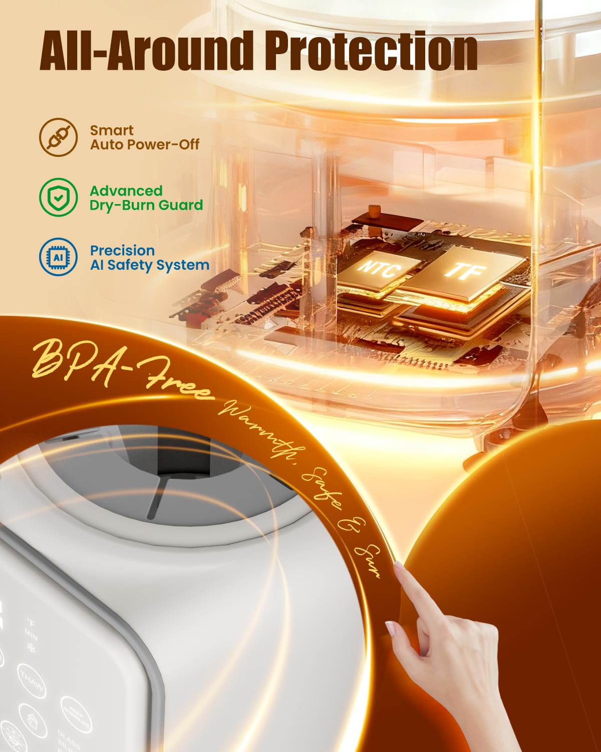 - [No Destroy! Nutrition Preservation] Beikuer milk warmer for baby keeping 98℉ to keep nutrients while warming, preserving key milk's natural nutrition. NTC smart Ai chip 3.0 ensures precise heating while dry burn protection and auto shut-off features, making it a reliable solution for parents who trust Beikuer baby bottle warmer. You will make a great decision.