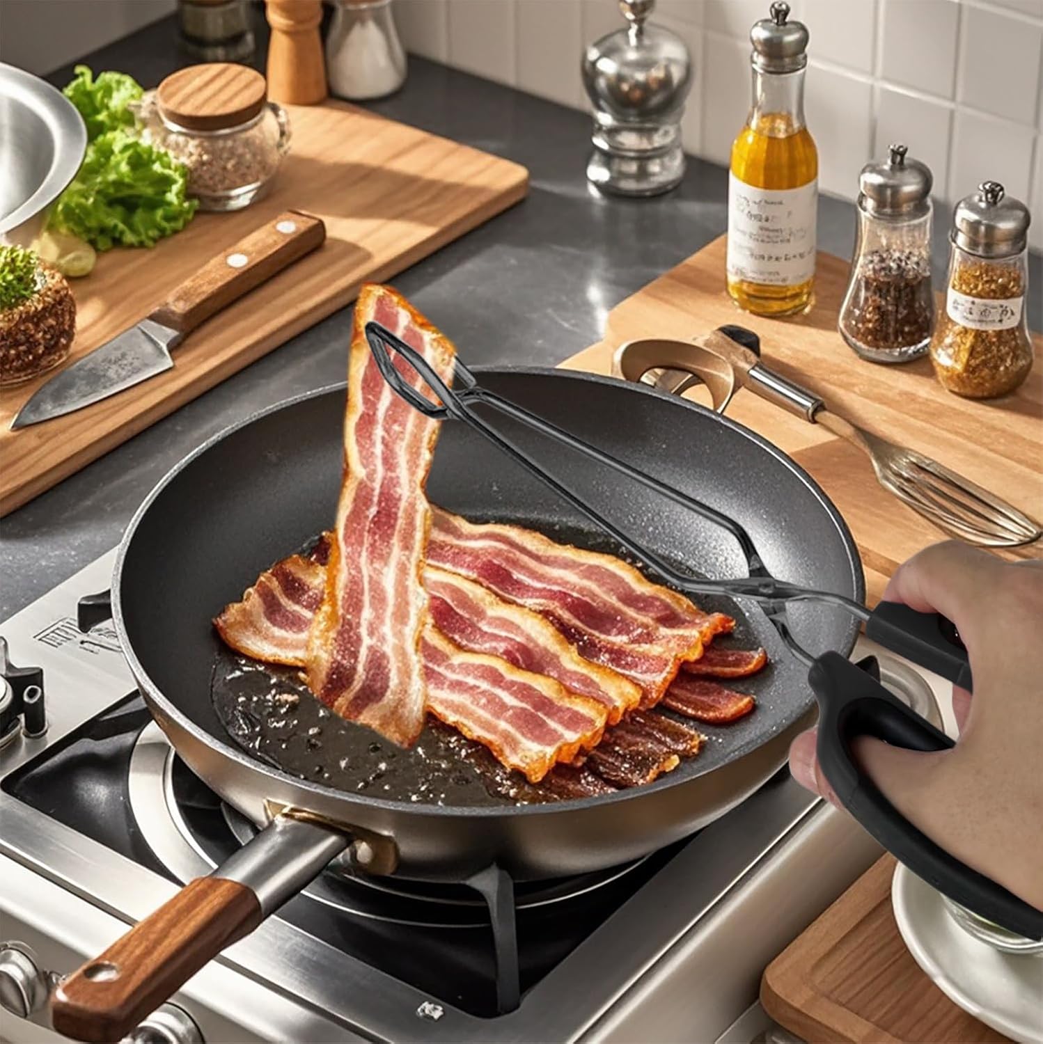 - Versatile Use: Perfectly designed with square heads and threaded tips, our metal tongs are ideal for effortlessly picking up a variety of items. Securely grab steaks, flip burgers, serve salads, and handle everything juicy (think bacon, chicken wings, corn cobs) or delicate (like fish fillets, crab legs, veggie kabobs) - no slips, no mess!