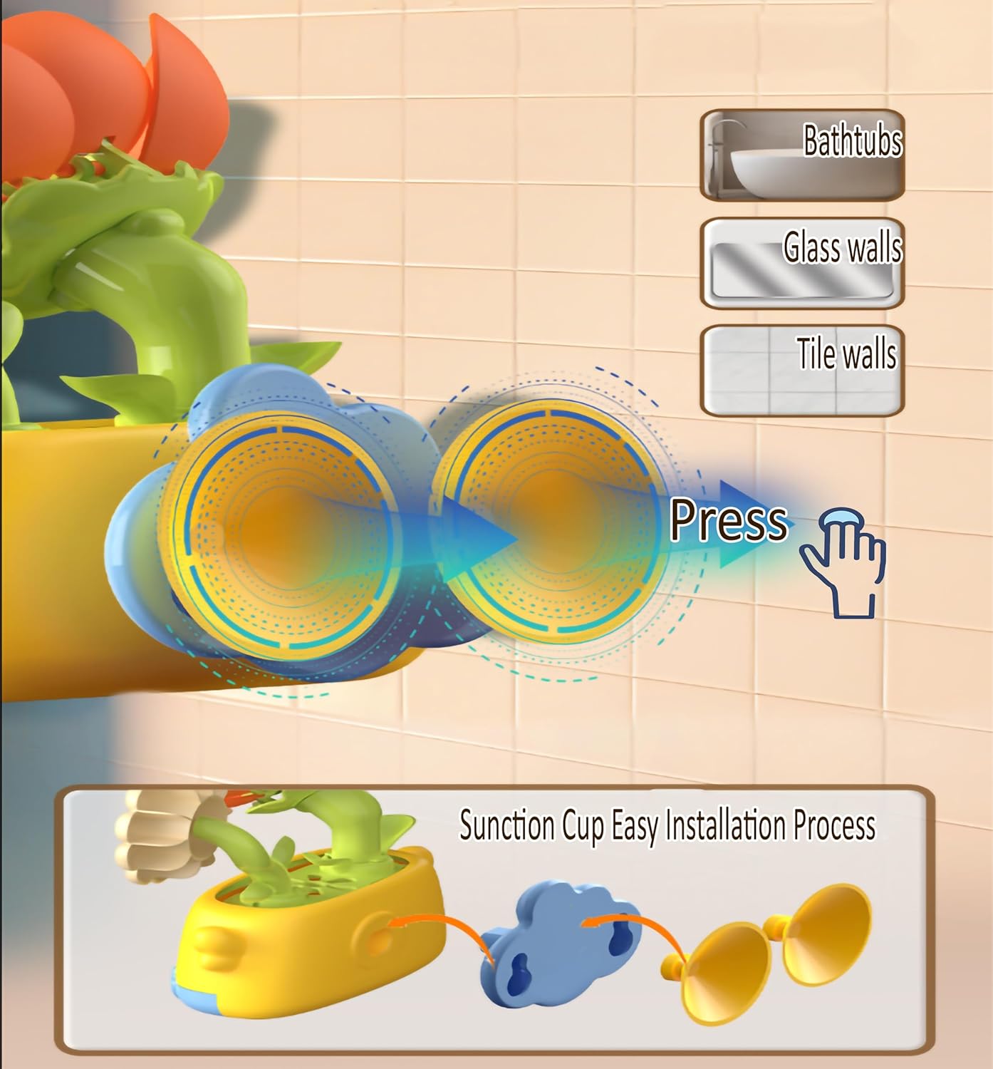 - 【Super-Secure Suction】Multiple strong 2 suction cups firmly attach the toy to tub or tile surfaces, ensuring stable playtime fun throughout bath time.It's also lightweight and easy to clean, with no small parts to worry about (perfect for parents prioritizing safety)