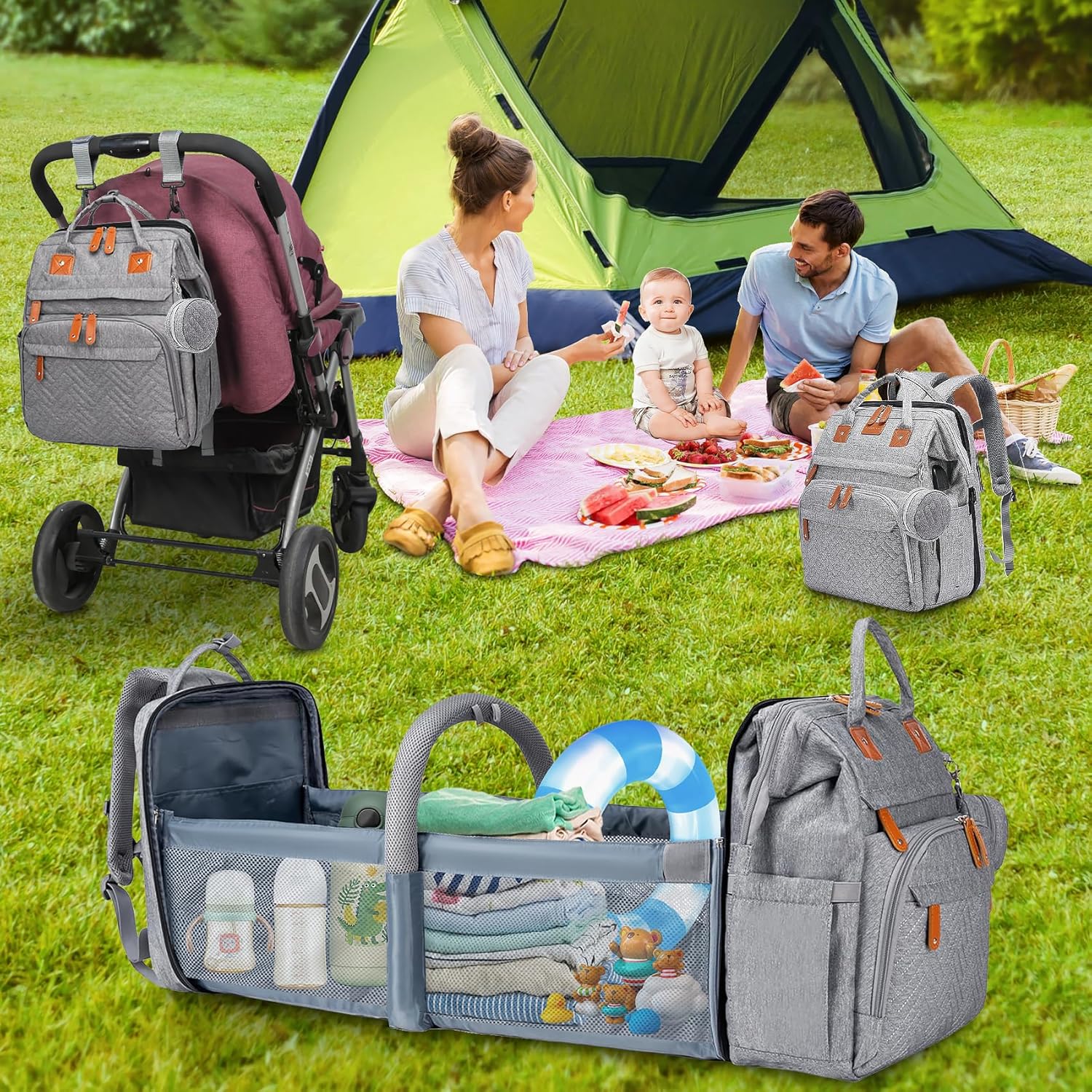 - 【MultifunctionDiaper Bag Backpack】This diaper bag has a 3-in-1 multifunction design, large diaper bag is very practicality and can effectively help you to organizer 1-2 babys essentials in the shortest time,It's spacious enough,easy to access.During your busy weekdays and enjoyable weekends, this baby bag will keep you company to perform amazing storage functionsIt's the ideal travel bag for longer trips with 2 built-in stroller buckles