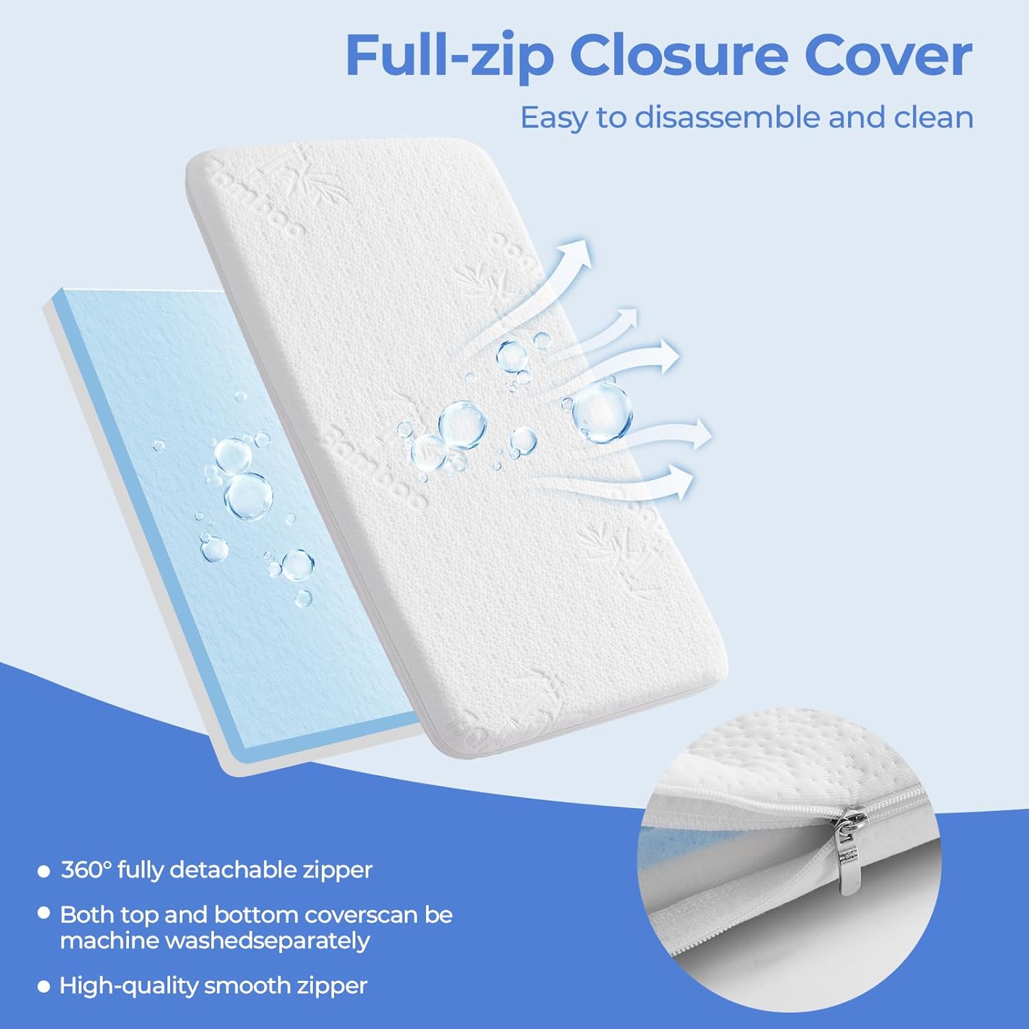 - 【Dual Firmness】"This mattress has two sides—one firm and one soft—so you can pick what works best for your baby. The firm side uses high-density foam for extra support, while the soft side has comfy gel memory foam for a cozier feel."
