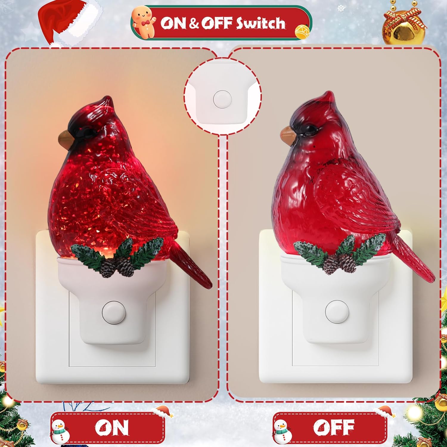 - Thoughtfully Crafted Holiday Decor Night Light: Experience the wonder of our water-glitter Christmas Cardinal night light! Each piece is carefully constructed with high quality materials, this decorative light offers both enchanting visuals and everyday durability. Featuring a festive Cardinal design that comes alive when illuminated. The high transparency casing showcases the dynamic glitter movement, while the leak-proof design ensures worry-free use.