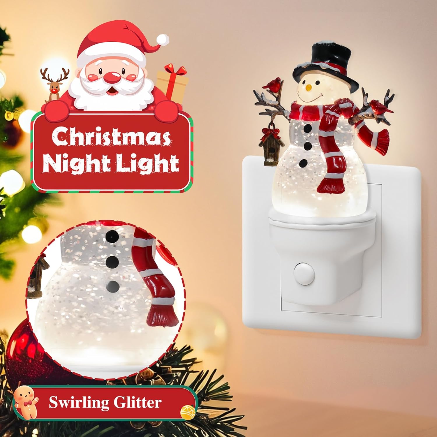 2 Pack Christmas Snowman Night Light Plug into Wall Glitter Water Nightlight with USB/Outlet Options, Christmas Decorative Nightlight for Bedroom Kitchen Holiday Decorations Gifts (Snowman)