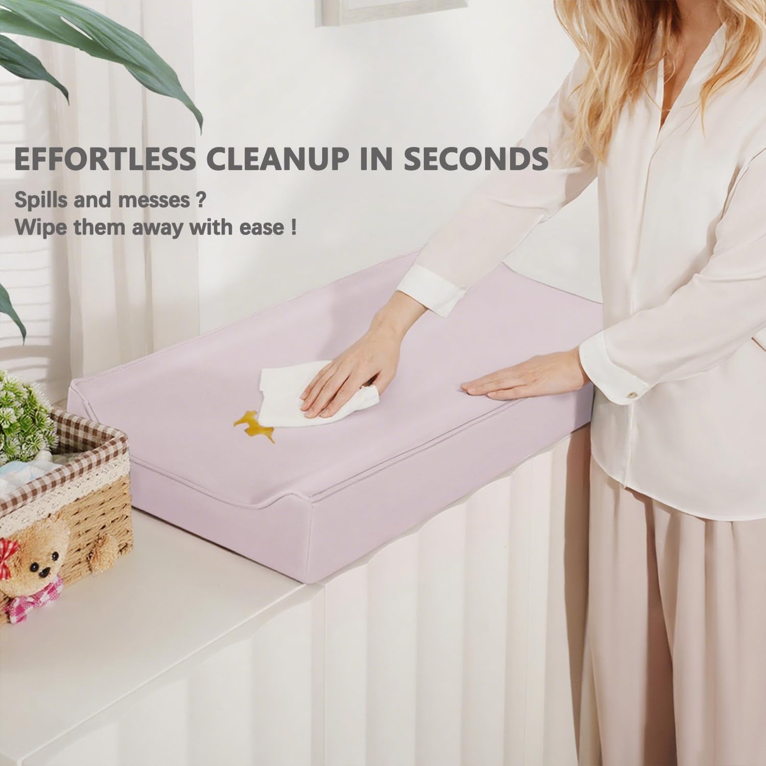 - Hassle-Free Wipe Clean Maintenance: Forget time-consuming machine washes! The ultra-smooth vegan leather surface wipes clean in seconds with just a damp cloth or baby wipe—perfect for those frequent, messy diaper changes. It also resists stains and odors, staying fresh even after daily use, so you can focus more on your little one and less on chores.