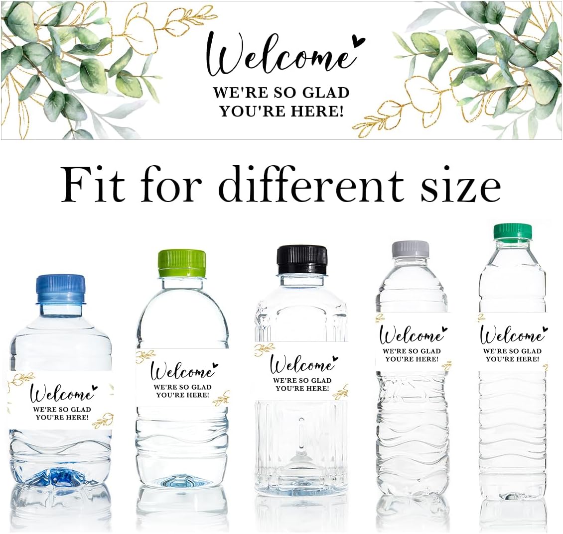 100PCS Wedding Water Bottle Labels Waterproof Greenery Floral Wraps Sticker for Water Bottle Baby Shower Bottle Label for Bridal Shower Party Welcome (Eucalyptus)