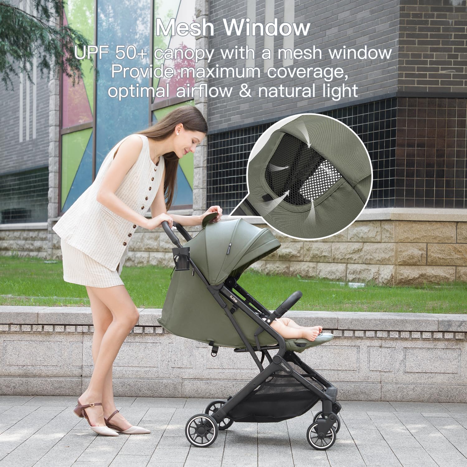 - Versatile Canopy with Added Convenience: This infant stroller has an adjustable waterproof UPF50+ canopy that provides maximum sun coverage and optimal airflow; The "Peek-a-boo" window provides a closer viewing and air circulation; While a removable cup holder frees up your hands; Plus, the spacious under-seat basket holds essentials like diapers, keys, water bottles, and phones