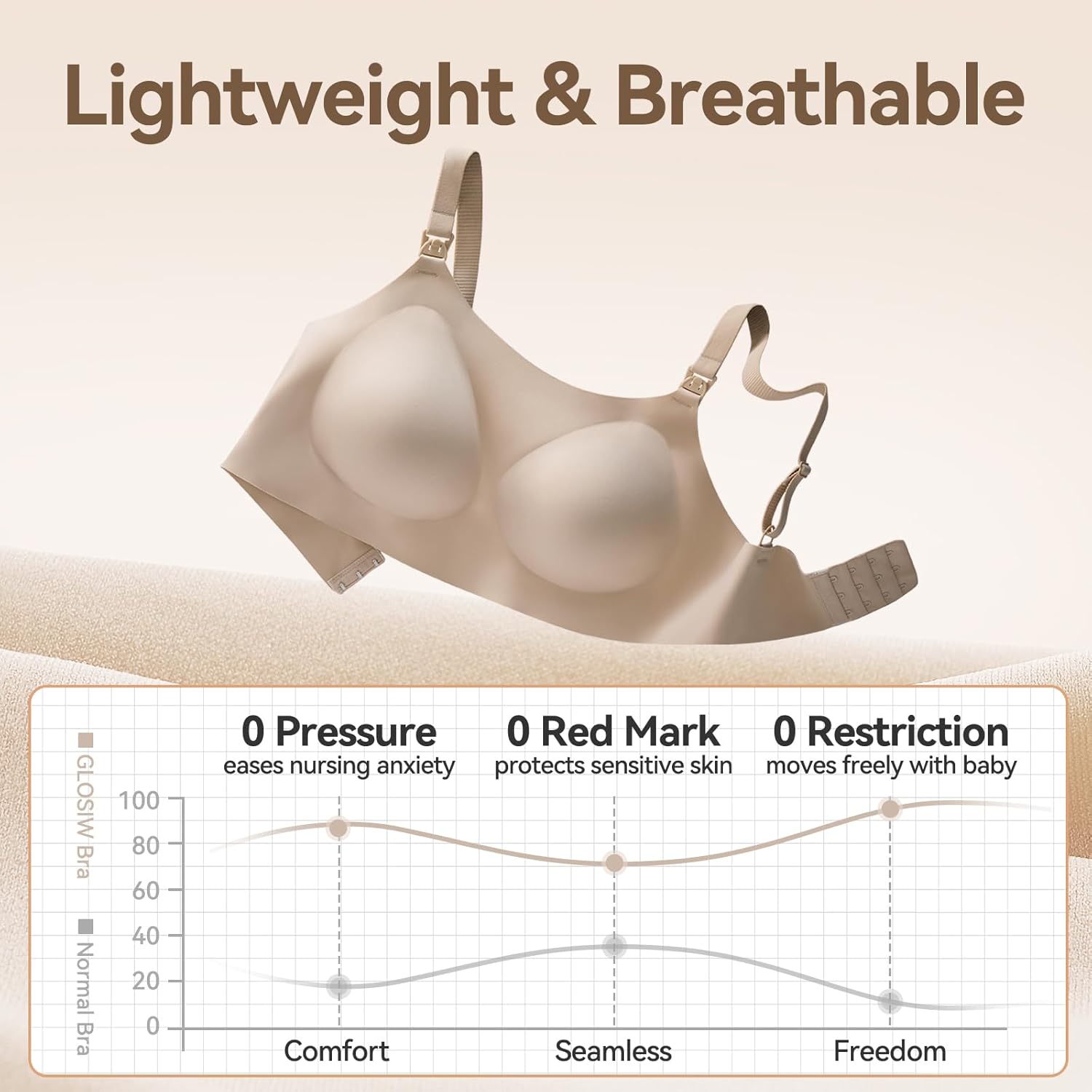 - 【Comfortable & Soft Fabric】GLOSIW maternity bra use A-grade fabric, contains 54% nylon and 46% spandex. The soft and breathable bra providing ultimate comfort for both mom and baby. Our bra has excellent stretchability and can adapt to body changes during pregnancy and lactation.