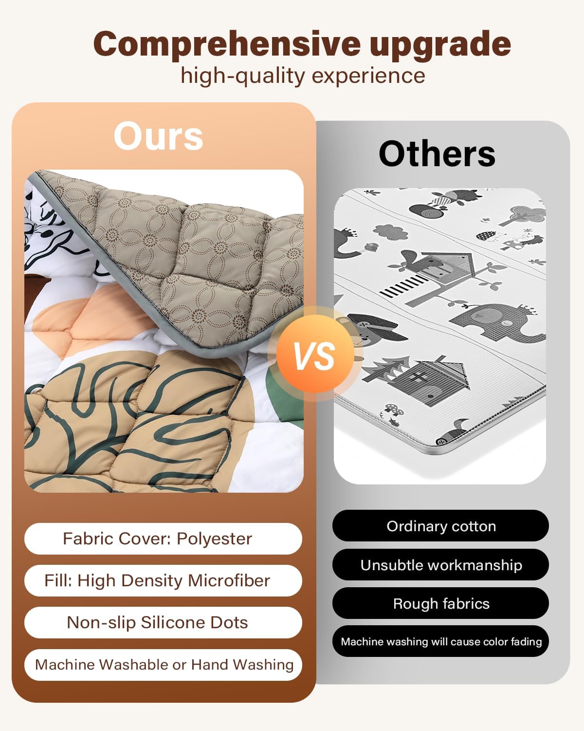- 【Comfortable and Soft】 The infant play mat is made of super soft fabric and is filled with 690g of premium 100% polyester per square meter, making it very soft and comfortable, Provide comfort for your baby during playtime or naps