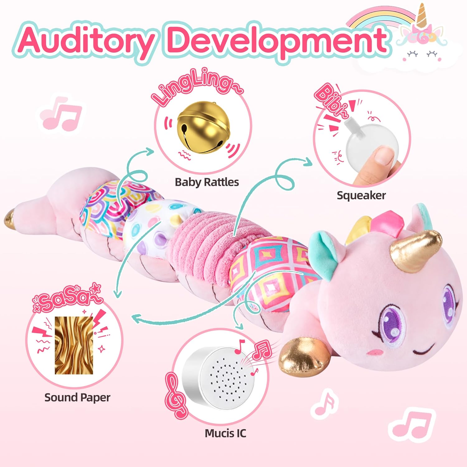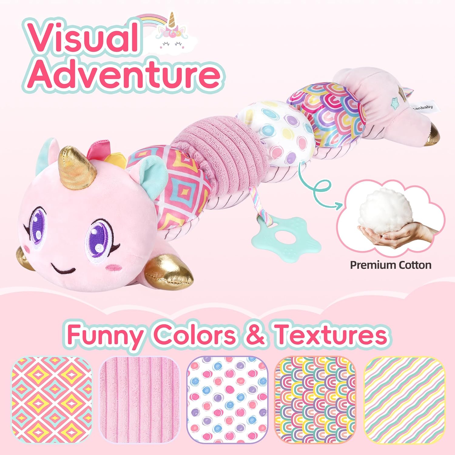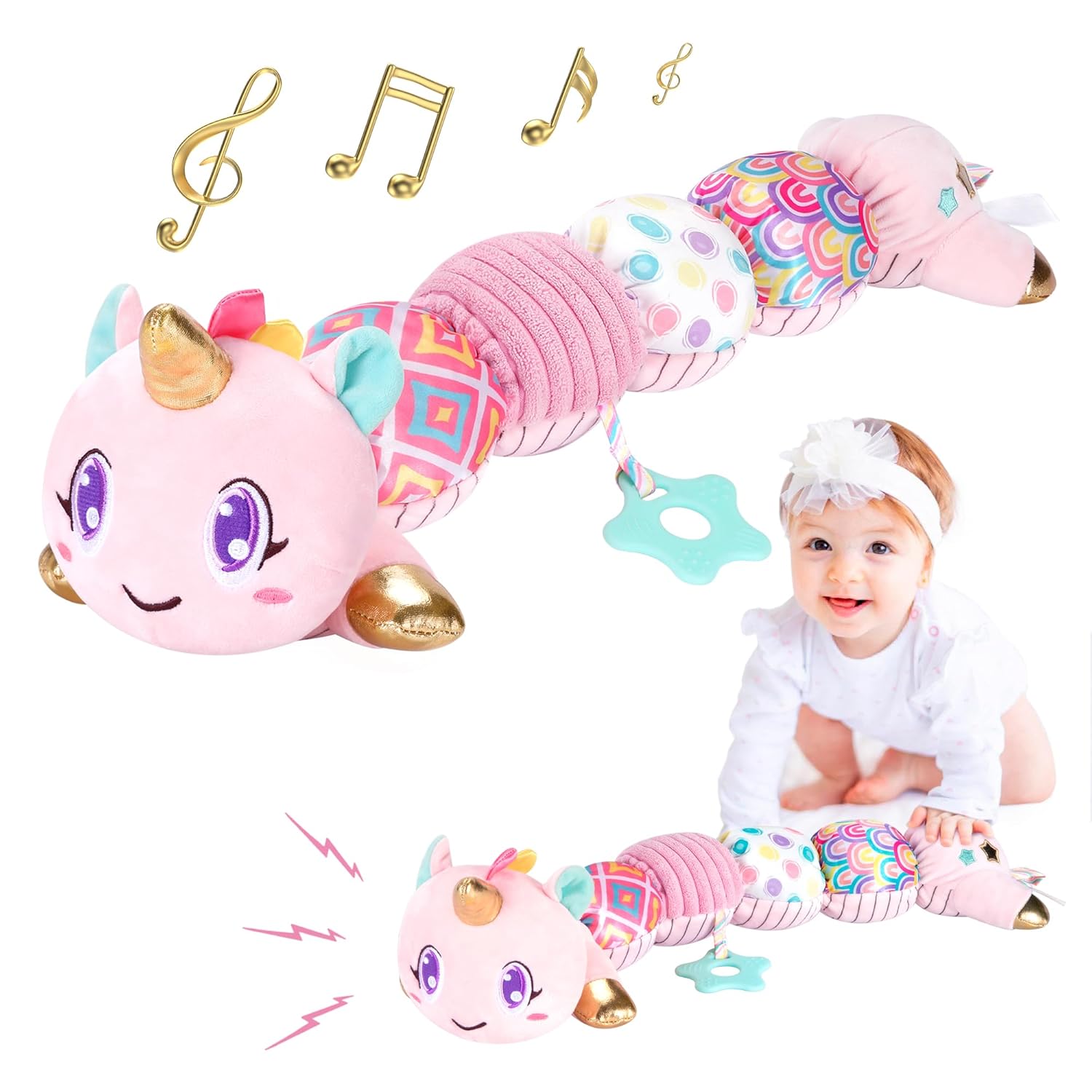 - Multi-Functional Soothing Companion: Not only a Cuddly unicorn toy, but also a perfect soothing companion for your baby during playtime and bedtime. Bring this baby girl toy on family trips, stroller walks, or tummy time to soothed and entertained your little one wherever you go. Ideal for carpets, cribs, and car seats, this infant girl toys is an essentials companion for newborns and tummy time.