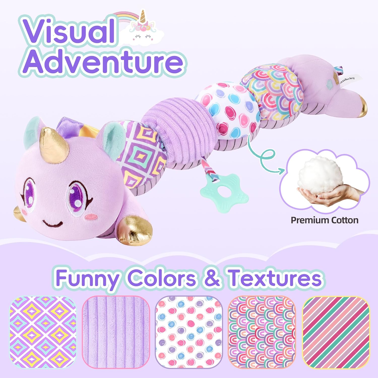 - Multi-Functional Soothing Companion: Not only a Cuddly unicorn toy, but also a perfect soothing companion for your baby during playtime and bedtime. Bring this baby girl toy on family trips, stroller walks, or tummy time to soothed and entertained your little one wherever you go. Ideal for carpets, cribs, and car seats, this infant girl toys is an essentials companion for newborns and tummy time.