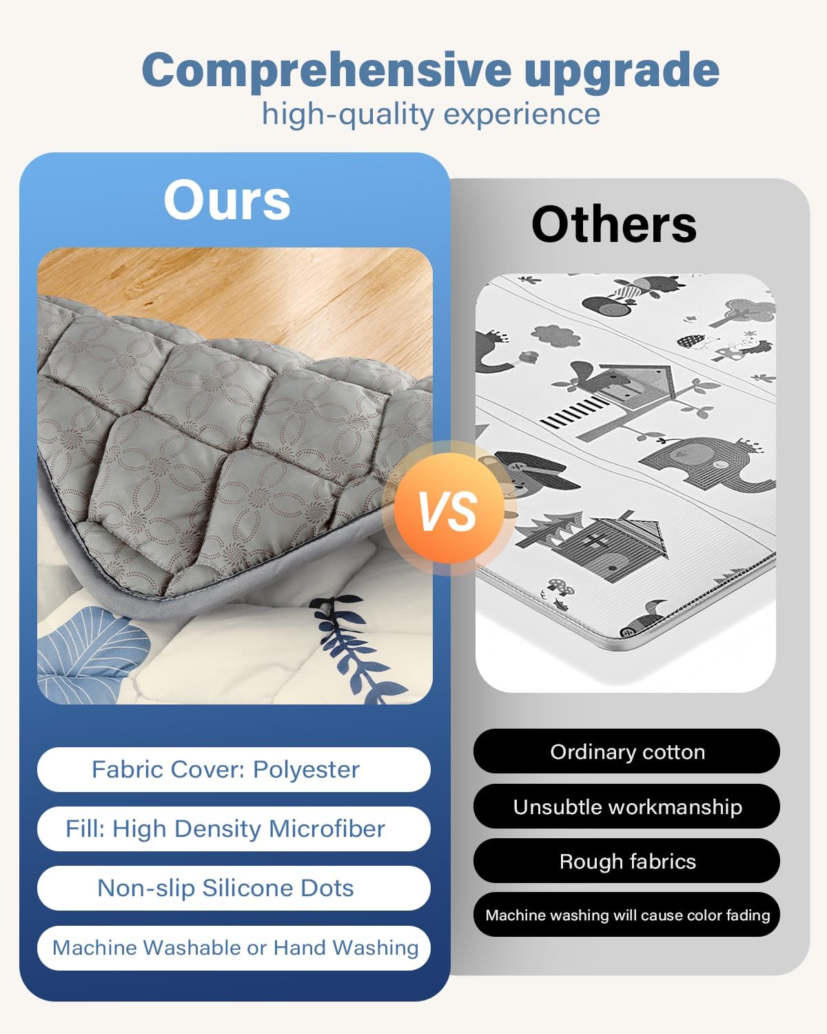 - 【Comfortable and Soft】 The infant play mat is made of super soft fabric and is filled with 690g of premium 100% polyester per square meter, making it very soft and comfortable, Provide comfort for your baby during playtime or naps