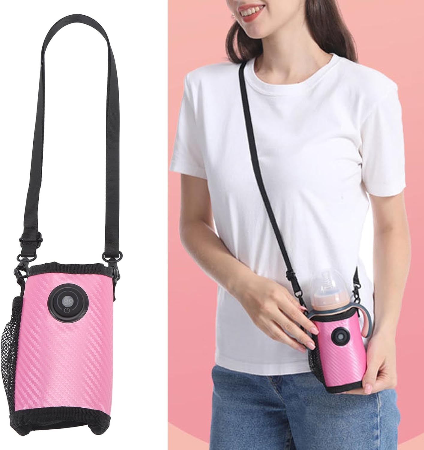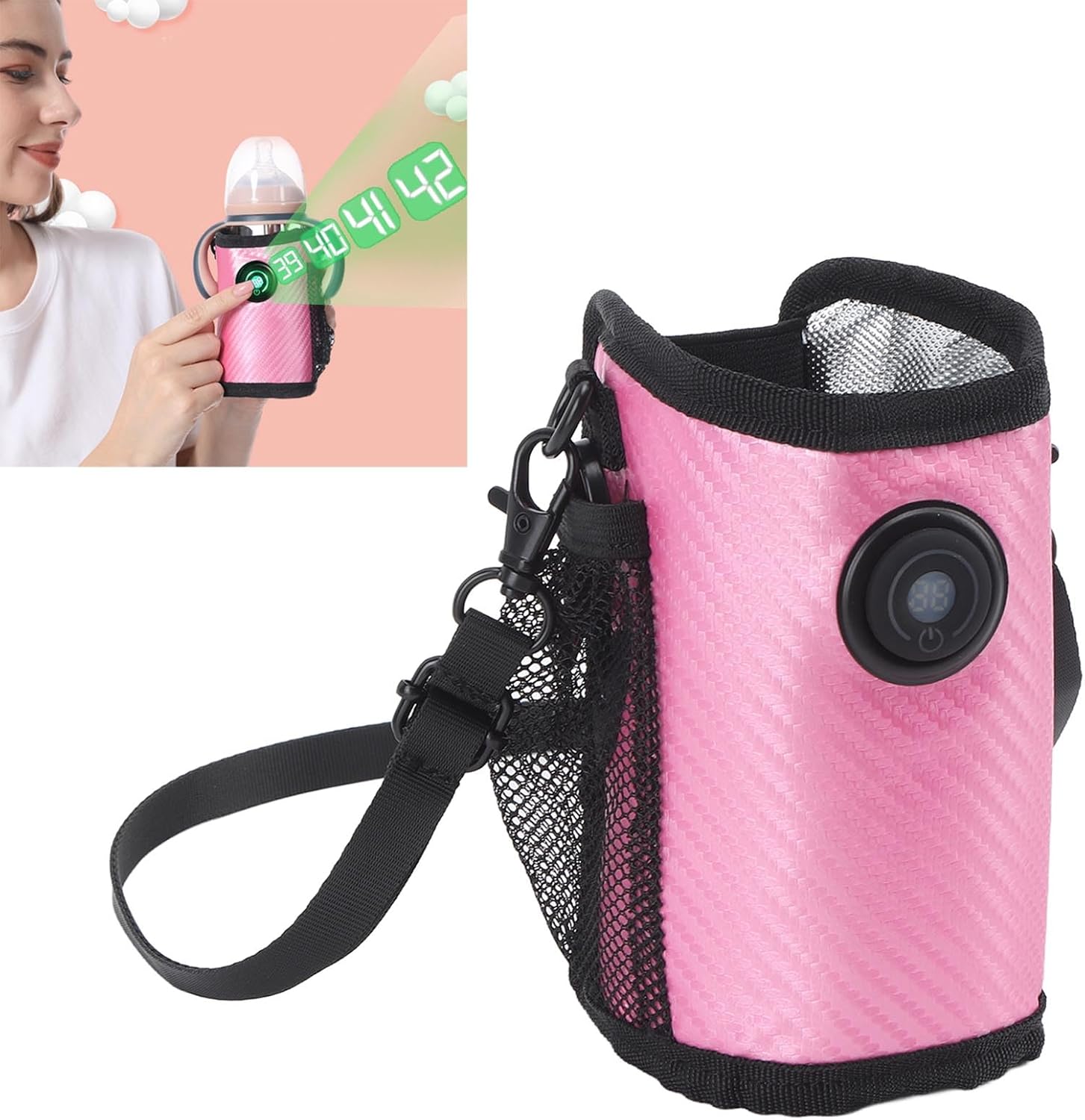 SIXRUN Baby Milk Bottle Warmer Bag, Portable Baby Bottle Heater with 23 Levels of Temperature Control (Rose Red)