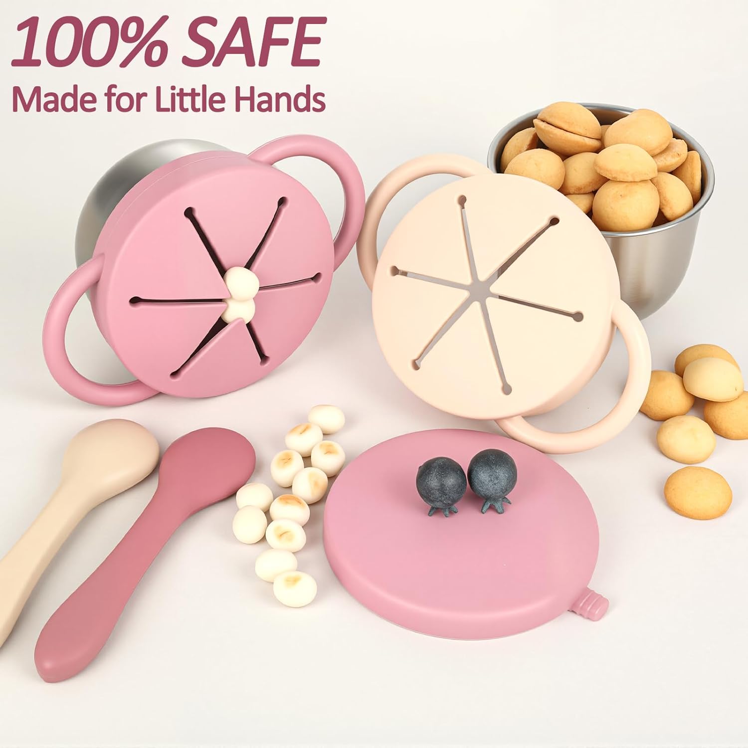 - 【Safe for Baby】:Our toddler snack cups are made with Food grade silicone material and 304 stainless steel. All materials have undergone rigorous safety testing, making these baby snack containers a trusted choice for parents.