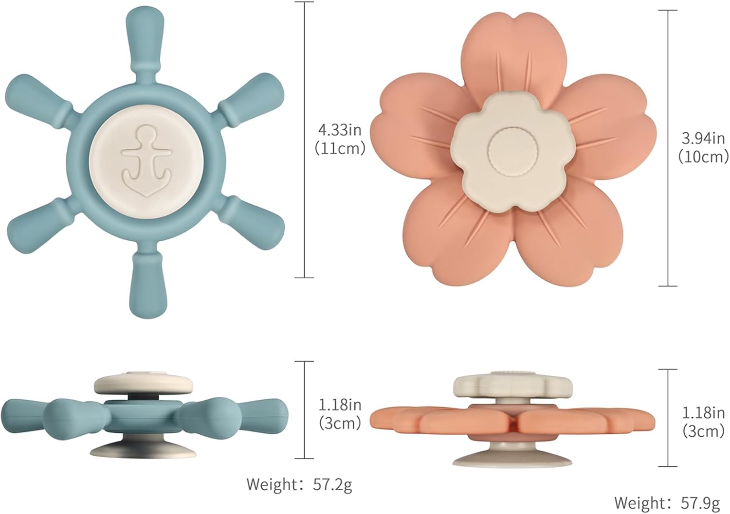 - Enhance Hand-Eye Coordination: Our Suction Cup Spinner Toys feature stylish and adorable designs like a ship's rudder and flower time, and modern pastel colors that capture babies' attention while helping them develop hand-eye coordination. The spinning action stimulates the baby's curiosity and promotes cognitive development, making it both fun and educational.