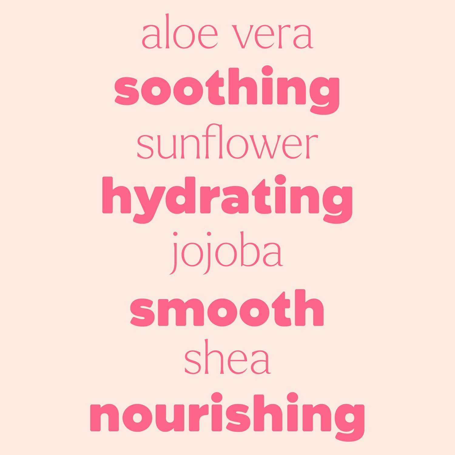 - NOURISHING INGREDIENTS THAT SOOTHE AND HYDRATE: Ingredients like Aloe Vera, Shea Butter, and Jojoba Oil work together to deliver deep, lasting moisture while helping to calm and comfort dry, irritated skin. These gentle botanicals support the skin’s natural barrier, leaving it feeling soft and smooth.