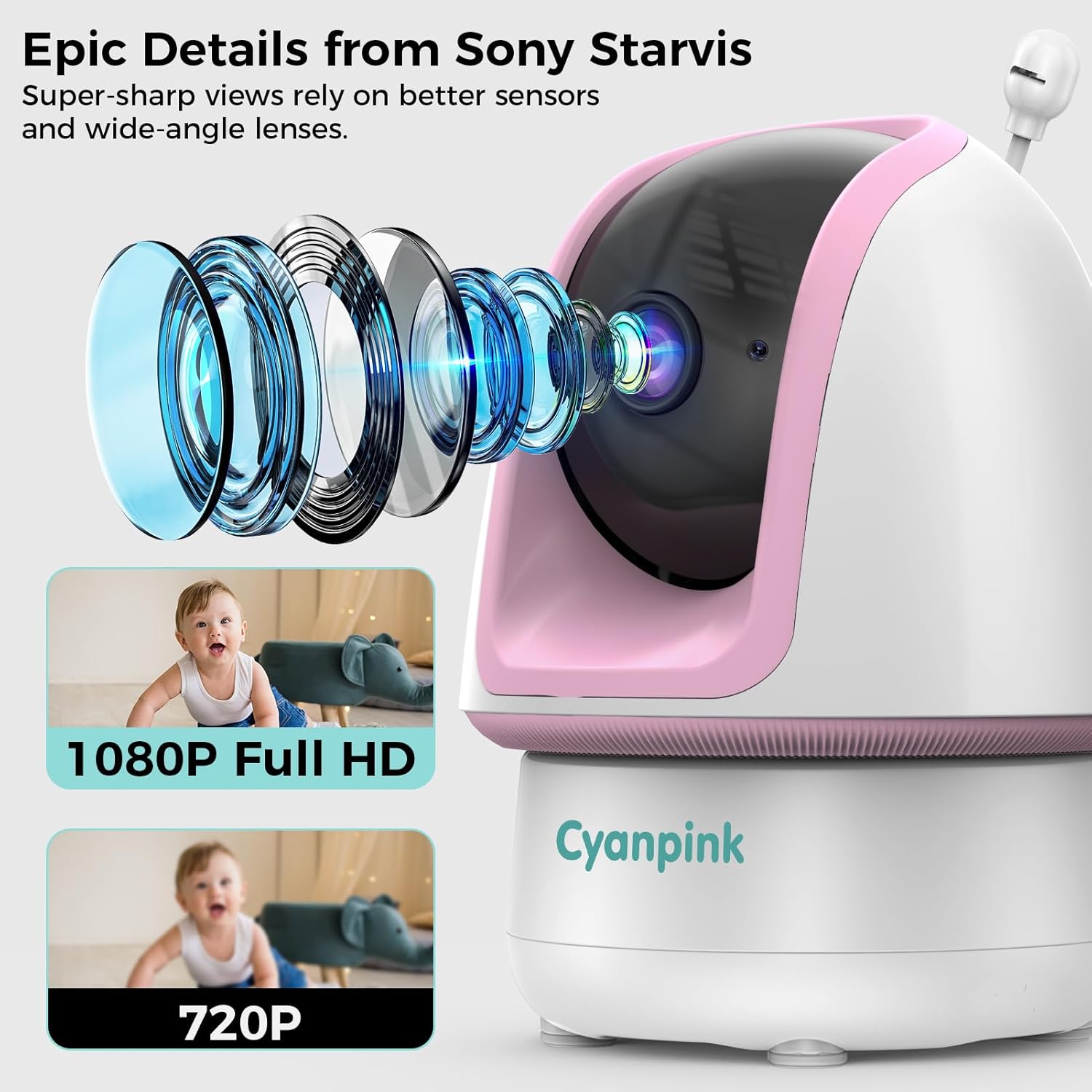 - Guard the Night, See Clearly: The 1080p camera is equipped with a Sony Starvis sensor to deliver clearer HD night vision, and the monitor comes with a 5-inch HD screen that ensures you can clearly watch over your little one's every move, day and night, keeping your precious one safe at all times.