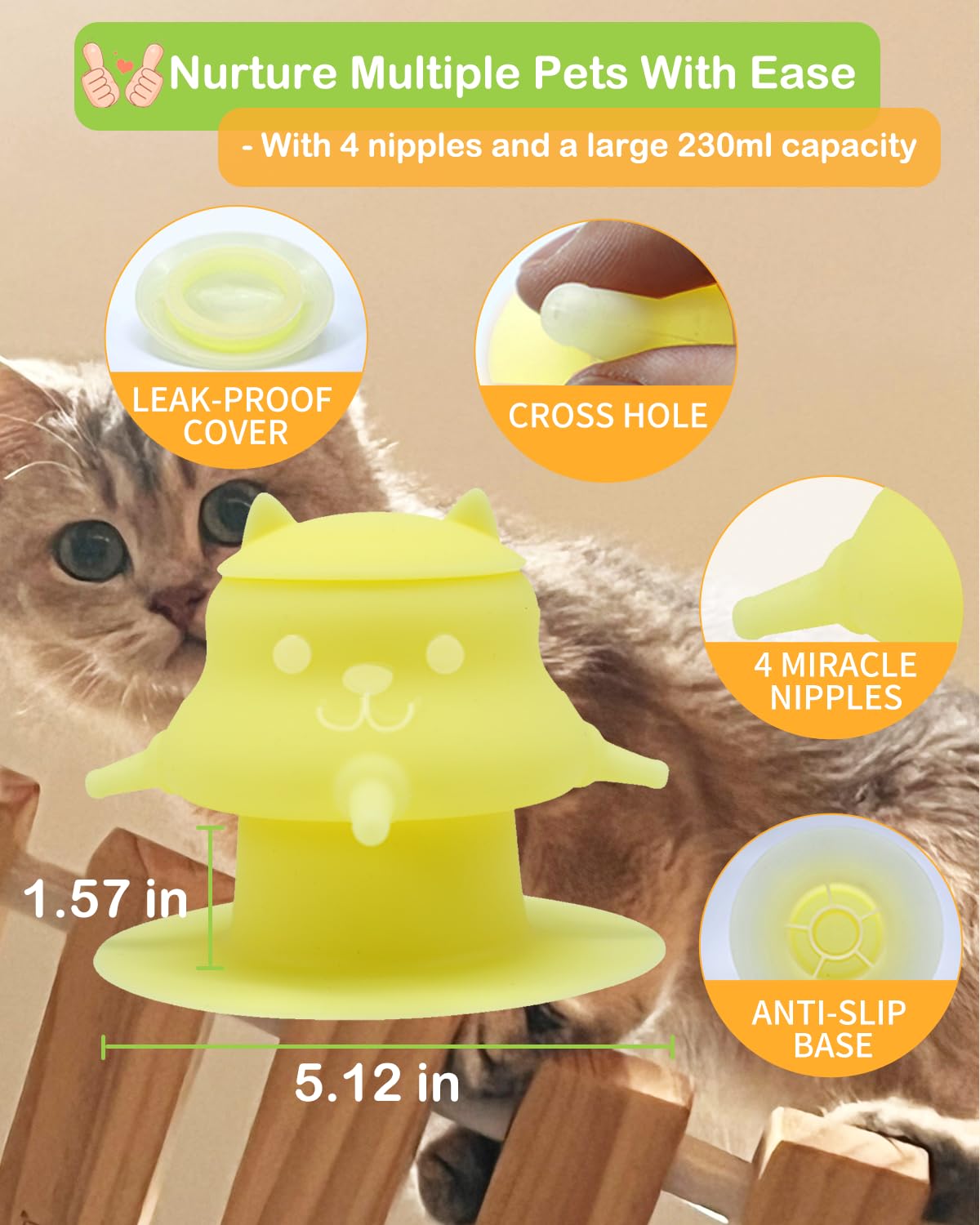 - Nurture Multiple Pets With Ease - With 4 nipples and a large 230ml capacity, the CUTENNIOU puppy feeder saves time and energy by allowing you to feed multiple kittens or puppies at once. The soft bionic nipples mimic a mother's teat to ensure a natural flow during sucking. Ideal for hungry puppies, kittens, and rabbits