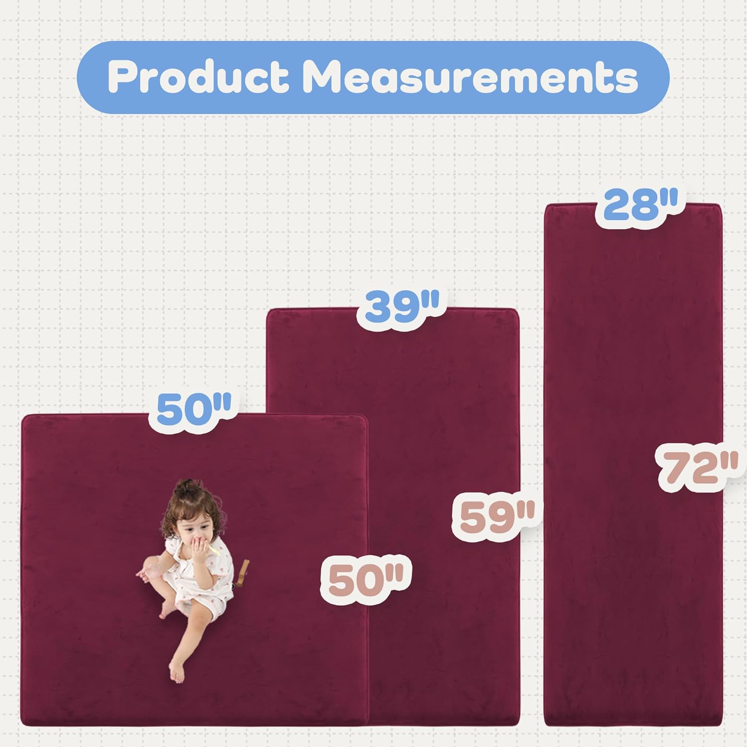 1.3" Thick Baby Floor Play Mat 50x50, Basic Padded Foam Mat for Tummy Time Crawling, Non Slip Cushioned for Babies Toddlers Infants Kids (Burgundy)