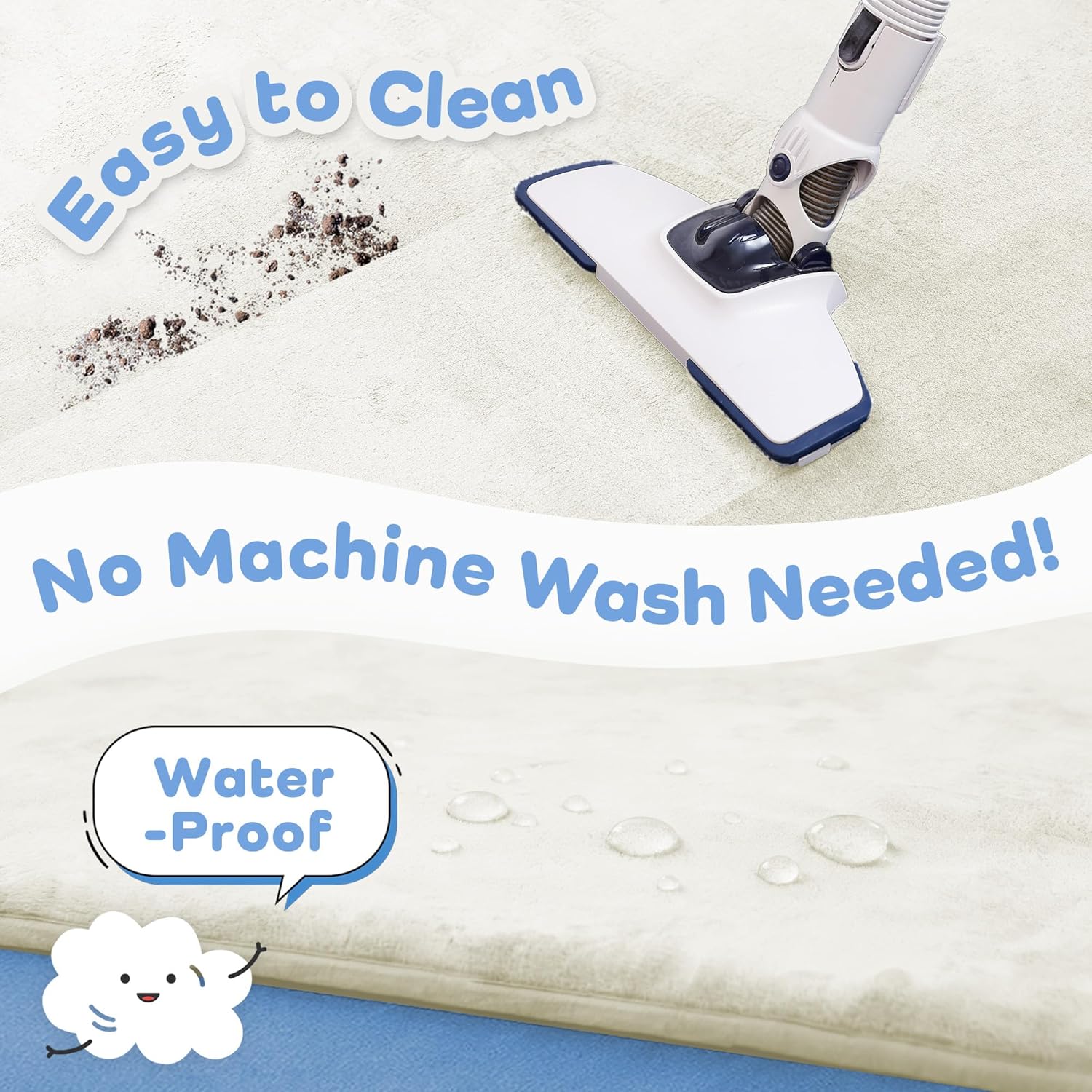 - Easy to Clean: This thick play mat for baby features a soft, wipeable velvet surface that’s easy to clean. Just vacuum or spot wipe spills, milk, or dirt. Whether used as a baby girl play mat or playpen mattress, it stays fresh and hygienic for daily use in busy homes.