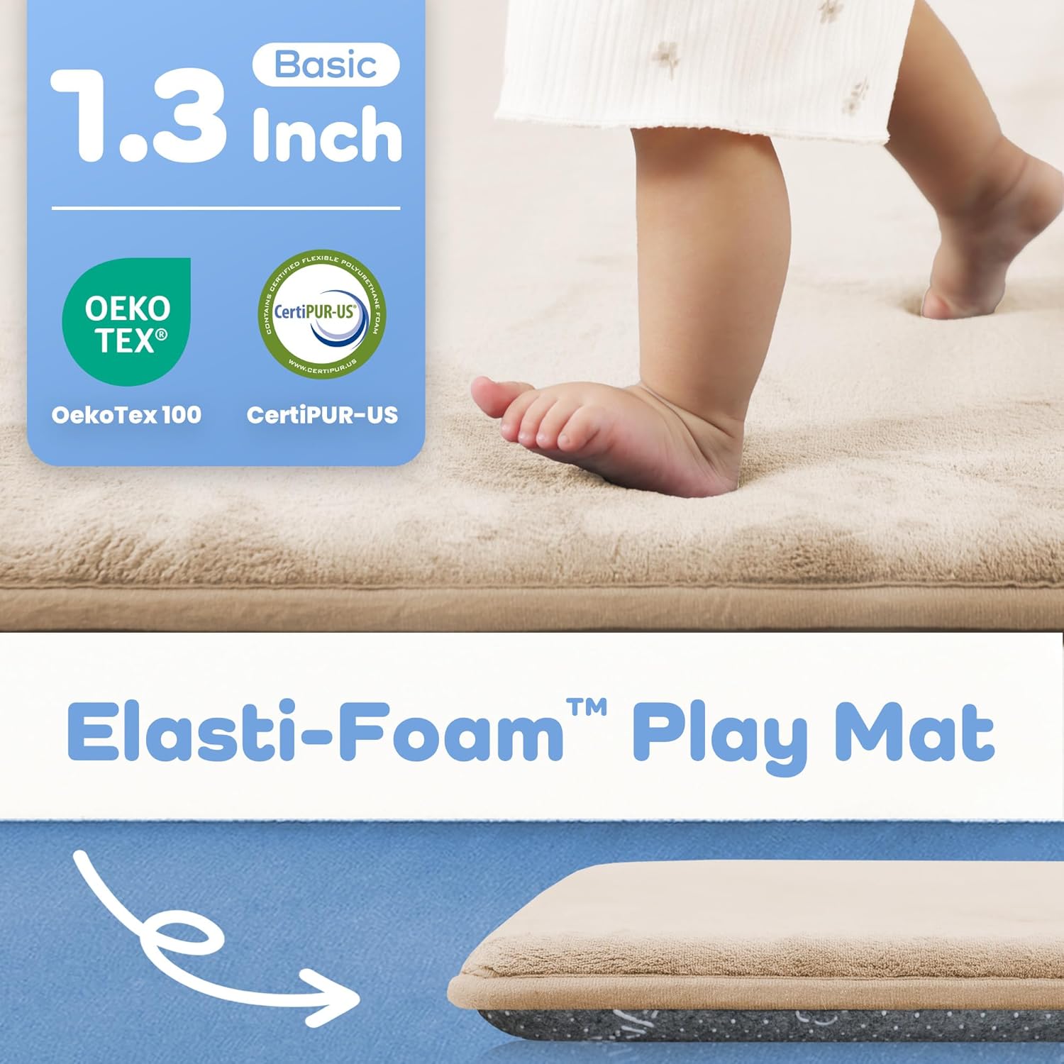 - Thick Comfort & Support: This 1.3" thick play mat for baby features a high-density foam core, offering exceptional cushioning for crawling, tummy time, or play. Ideal baby floor play mat to reduce joint pressure for infants, toddlers, and even adults.