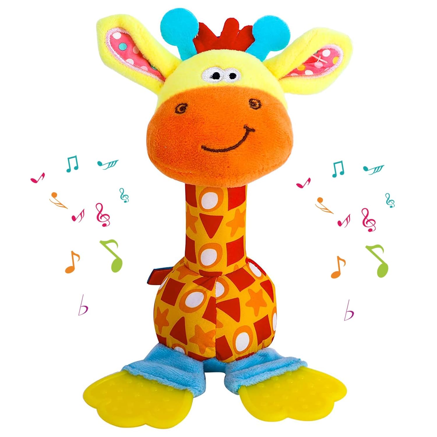 - Stimulate Sensory Development: Designed for 0-12 months infants, this giraffe plush baby rattle toy features crinkle ears, gentle squeaker, and soft textures to enhance auditory, tactile, and visual exploration during tummy time.