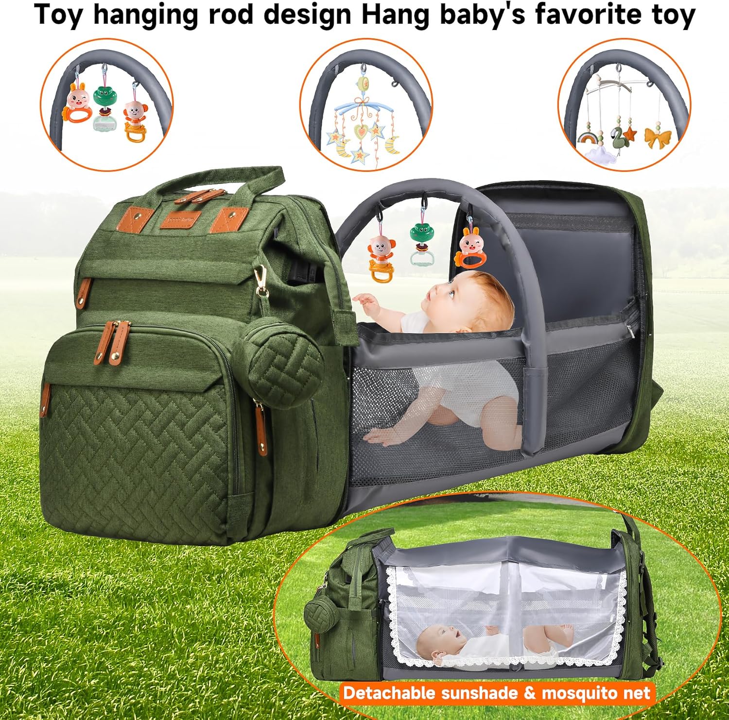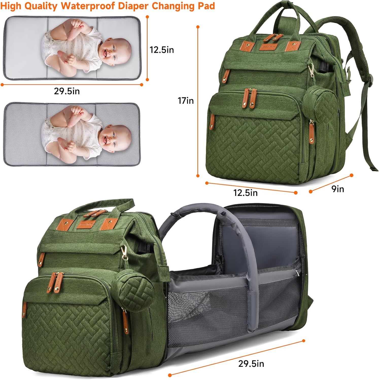 Baby Bag Diaper Bags with Changing Station, Large Capacity Diaper Bag Backpack for Moms Dads with USB Charging Port, Waterproof Diaper Backpack(Army Green)