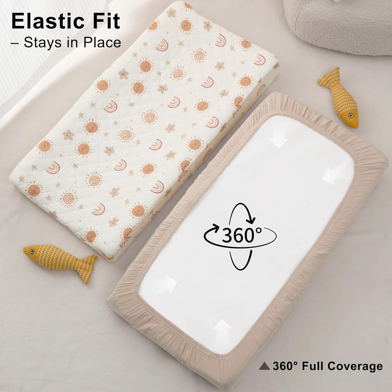- Secure Fit: Our changing table cover is designed with full elastic that fits securely around changing pads (32" x 16"); The cover stays securely in place, even as your baby moves, ensuring a stable and safe changing surface at all times