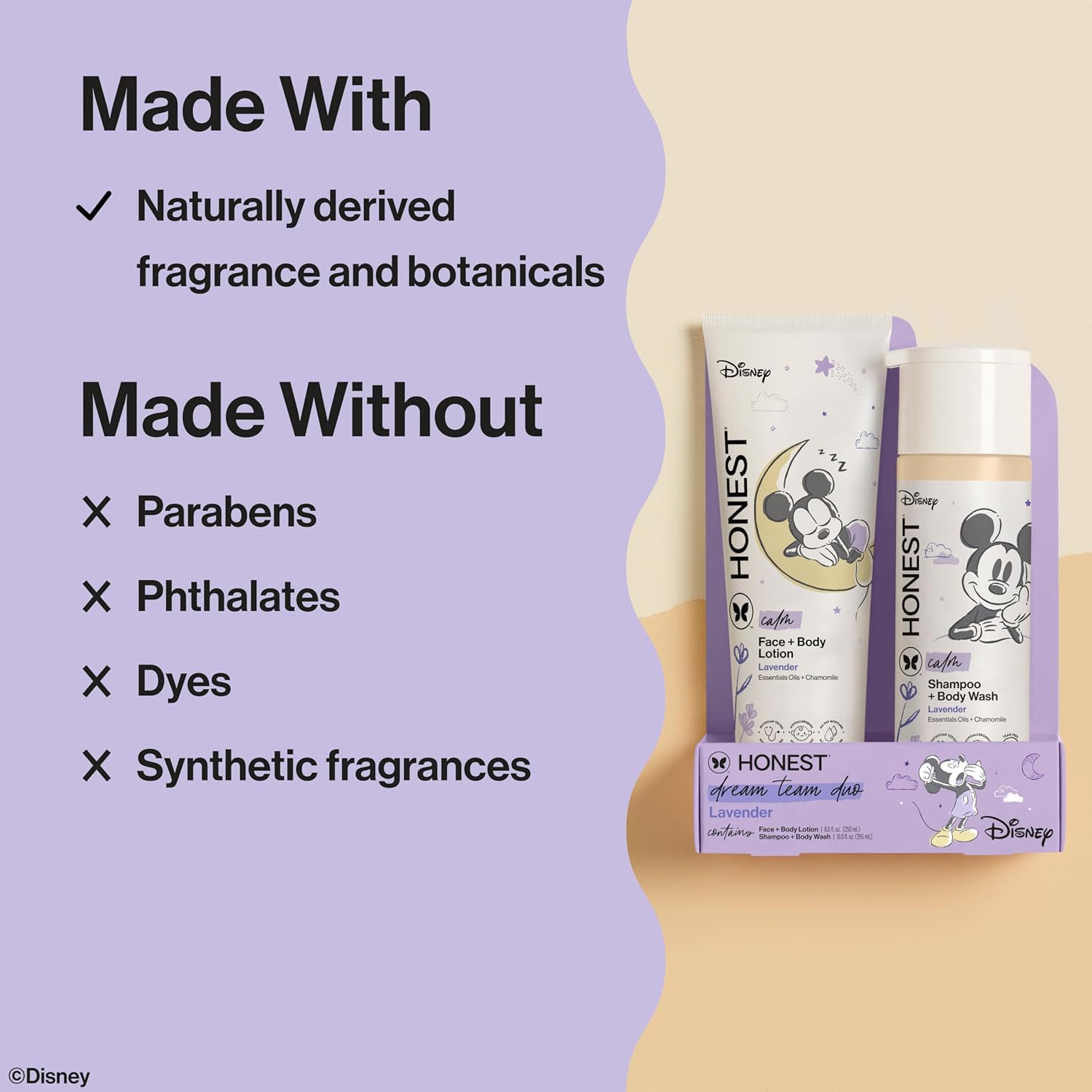 The Honest Company 2-in-1 Cleansing Shampoo and Body Wash and Face and Body Lotion Bundle and Disney Design Gentle Enough for Baby Dermatologist Tested Calm Lavender 18.5 fl oz