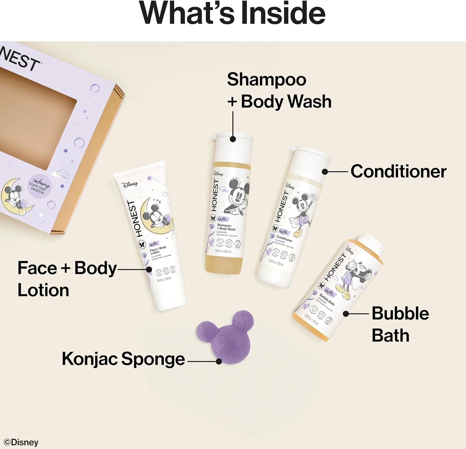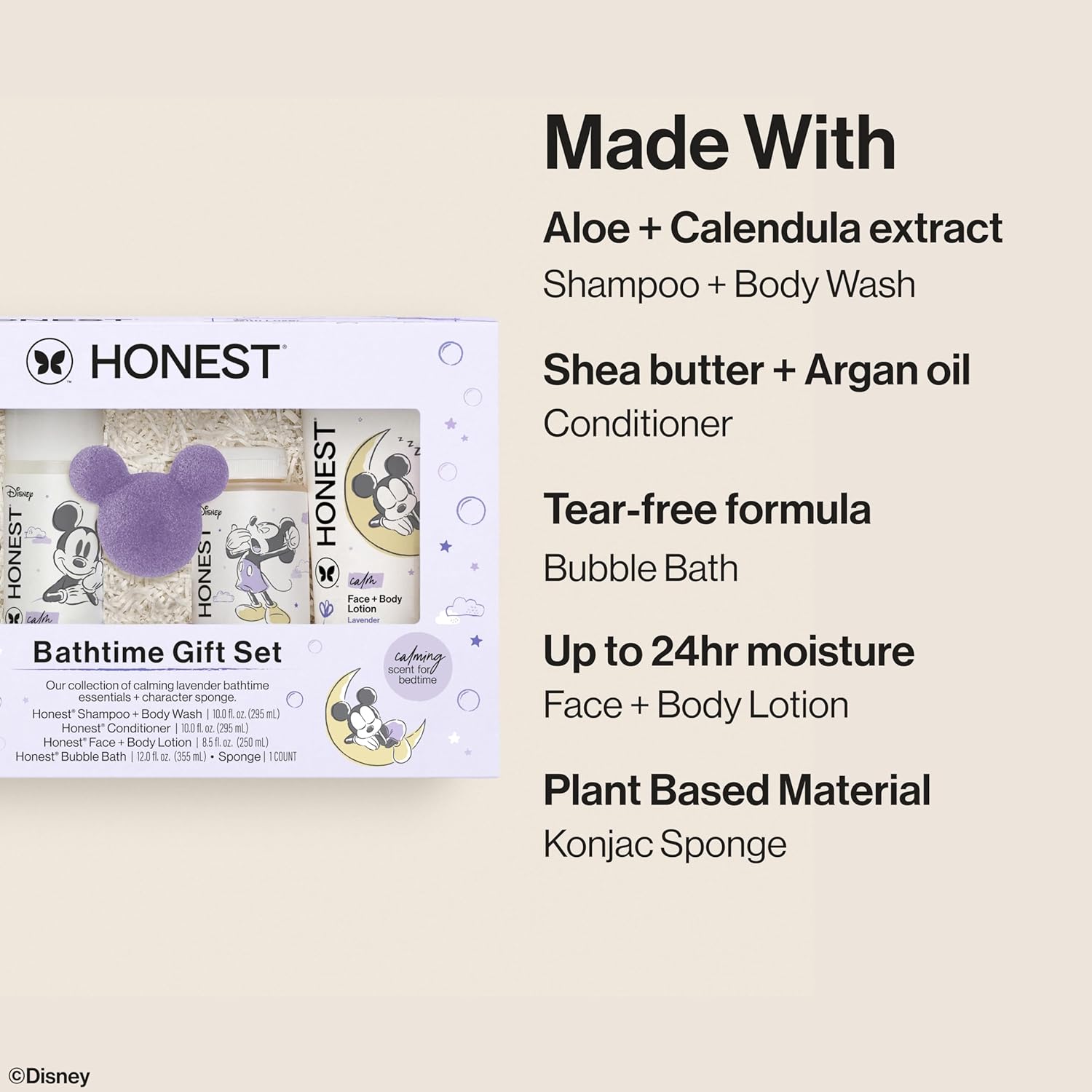 - GIFT OF CLEAN: Keep baby and the whole family moisturized and clean with the Honest Bathtime Gift Set, now with an enchanting Disney design. Fall in love with our hypoallergenic, physician-tested personal care essentials for super bubbly bathtime fun