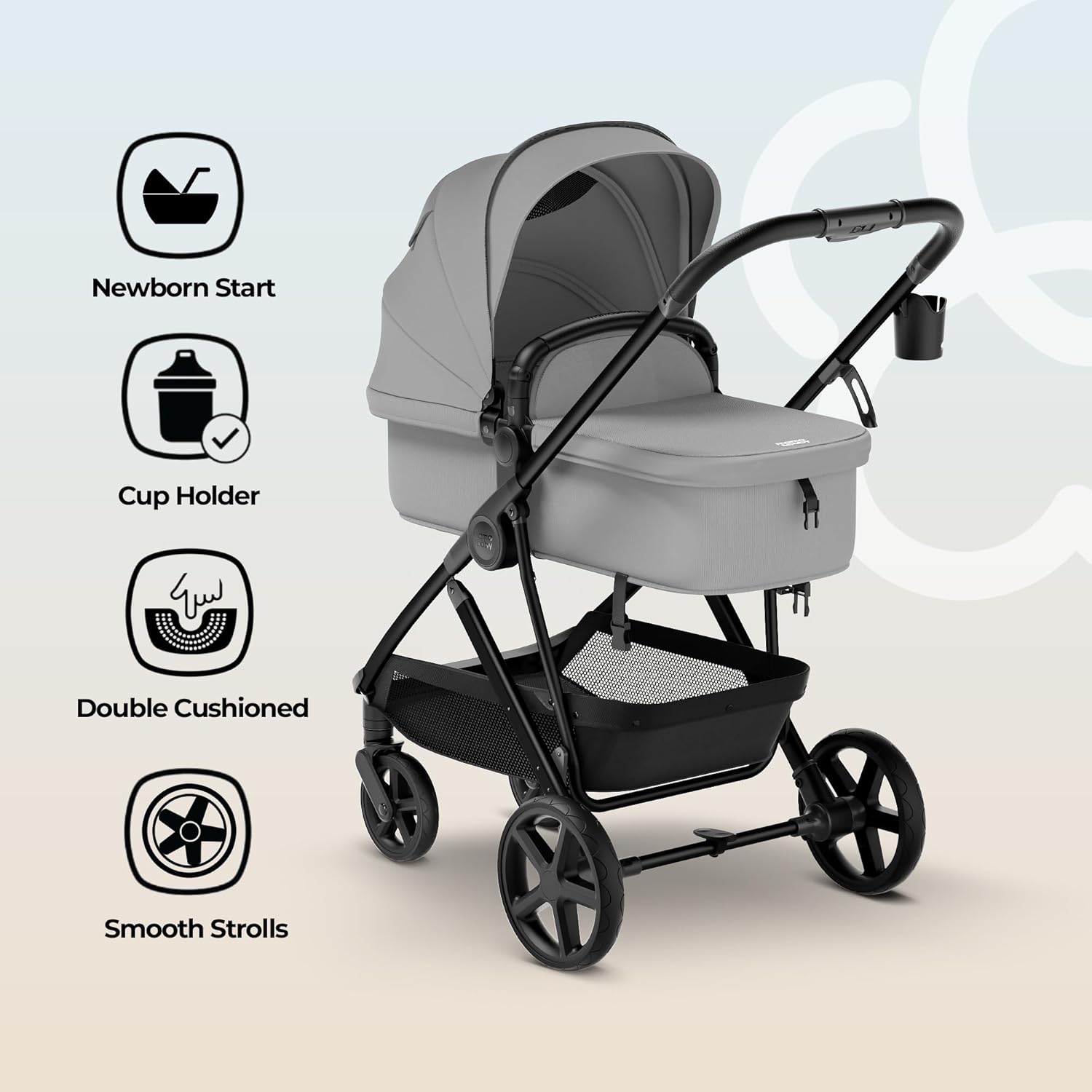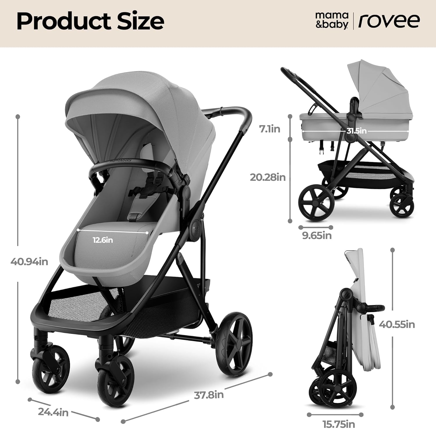 - 2-in-1 Baby Stroller: Convertible infant & toddler stroller with 4 modes and reversible seat for growing children.