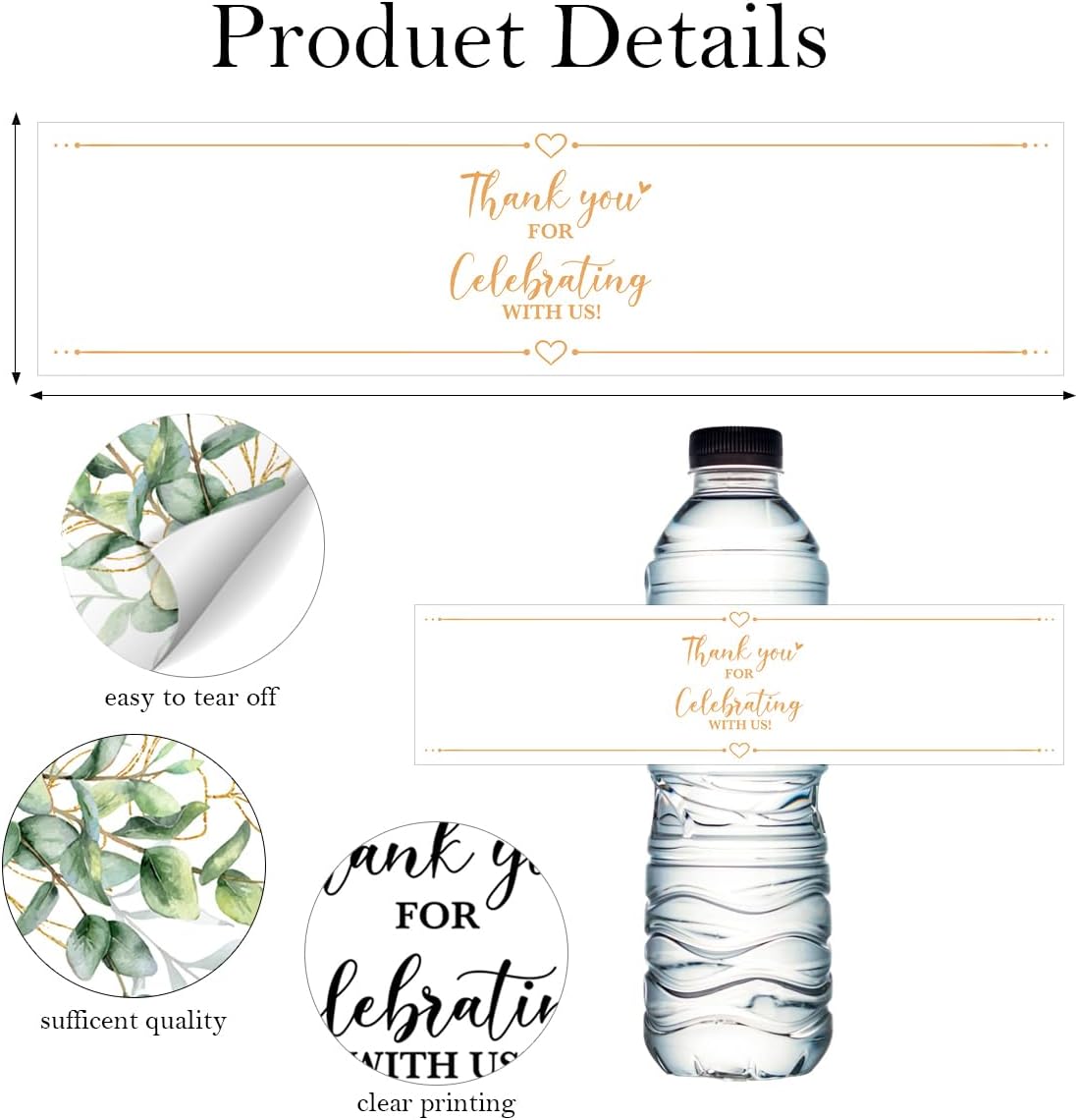- Unique Design: These water bottle labels feature a symmetrical greenery and floral pattern, creating a clear, natural feel, adding a touch of romance to your bohemian wedding. The green color is soothing on the eyes, and the stickers also include a thank-you note, thanking guests for coming.