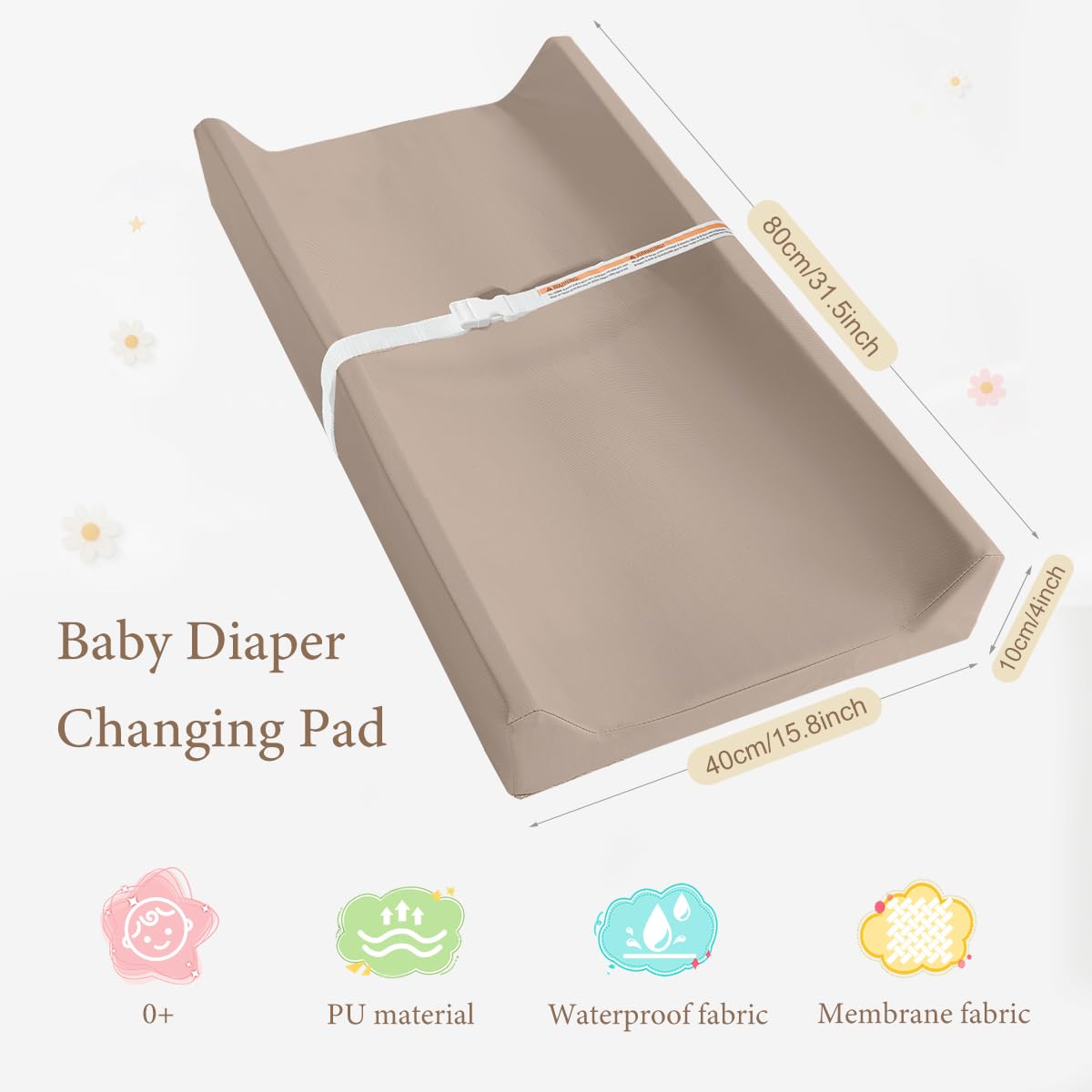 Baby Diaper Changing Pad, PU Compressed Waterproof Portable Wipeable Diaper Mat for for Travel, Fits Dressers & Tables (Khaki)