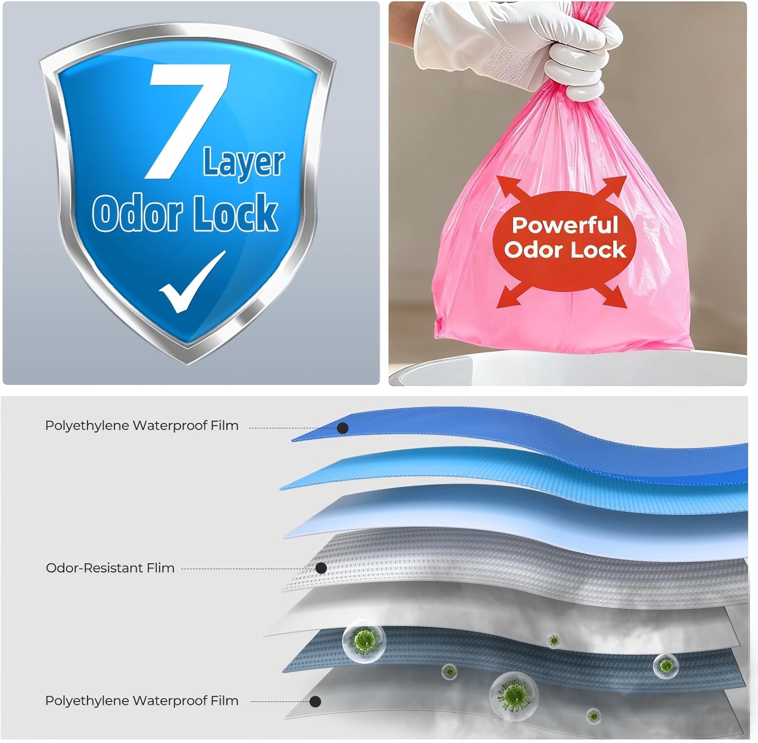 - Odor-Sealing Confidence: This diaper disposal bag features a seven-layer protective structure with an advanced deodorizing layer in the middle, offering excellent odor-blocking performance. These disposable baby diaper bags help create a cleaner, fresher environment for parents and babies